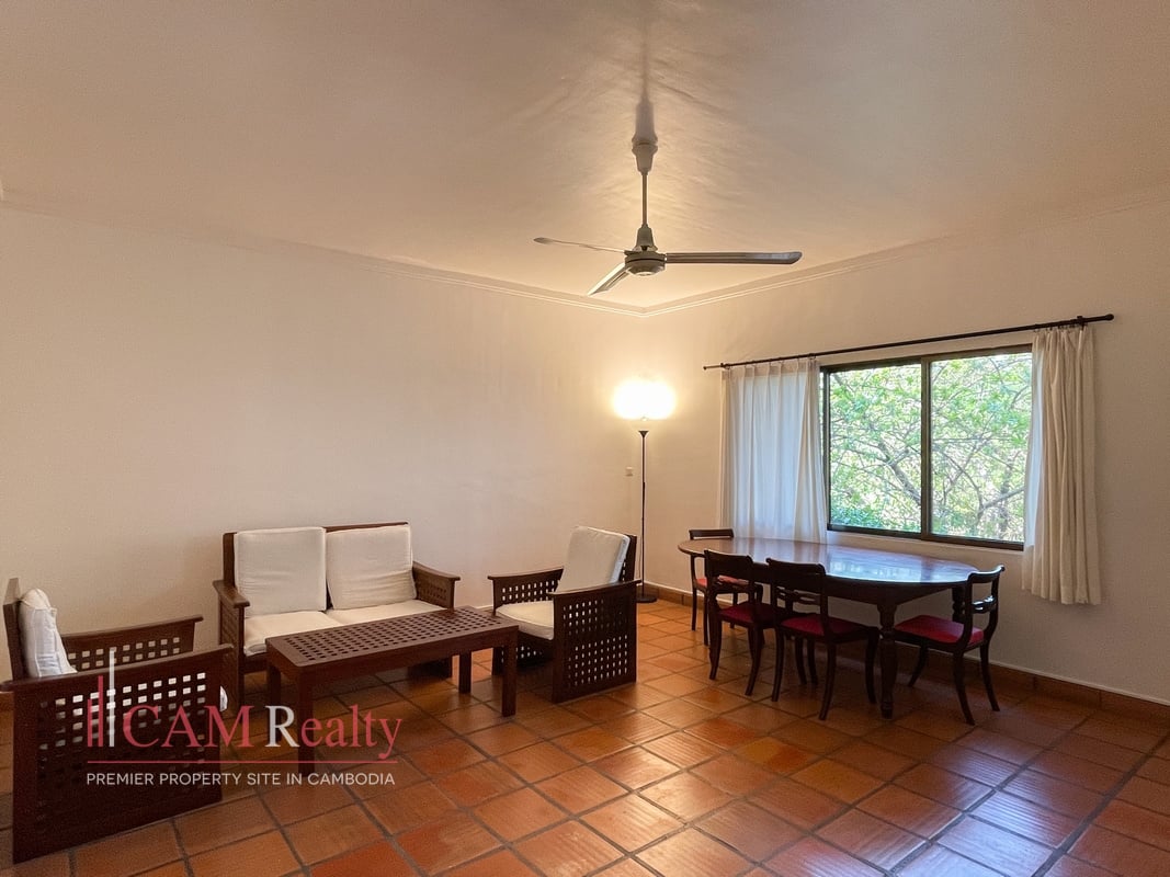 Colonial Style 1 Bedroom Serviced Apartment For Rent in Southern Tonle Basak. This residence and its premise are designed for a family or a couple of professionals. Its greenery and facilities create a relaxing vibe.