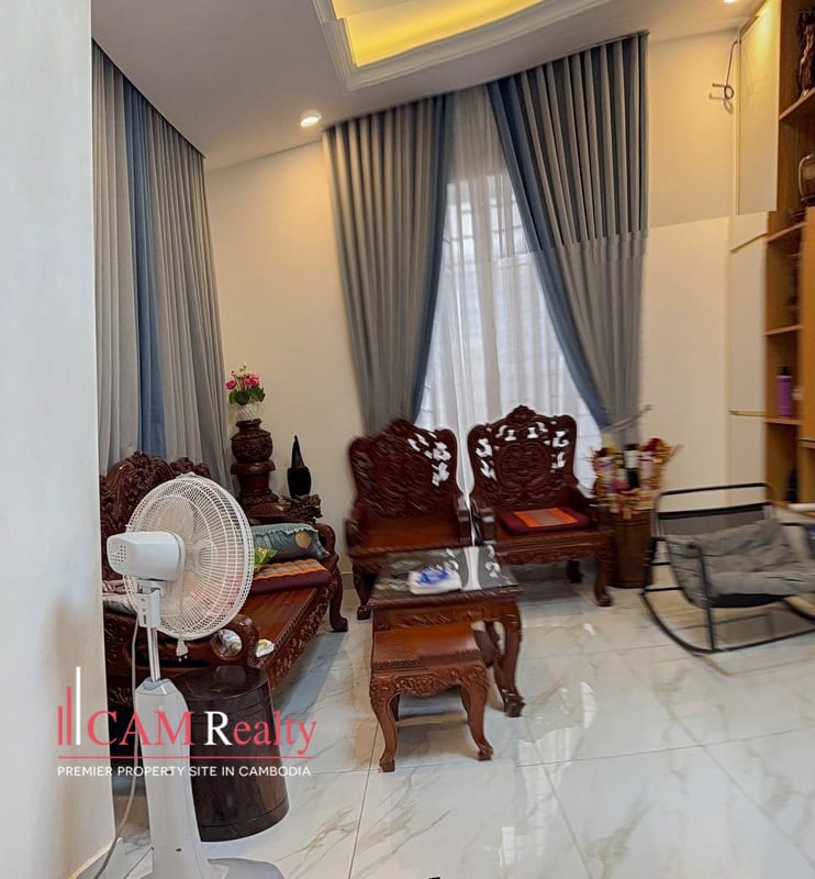 The villa is located in Sangkat Bak Khaeng, within the growing Khan Chroy Changvar. This area is known for its fresh air and peaceful atmosphere. It offers a quiet retreat away from the city’s heavy traffic. The district is rapidly developing with new infrastructure and riverside amenities. It provides a perfect balance between suburban tranquility and accessibility to the city center.