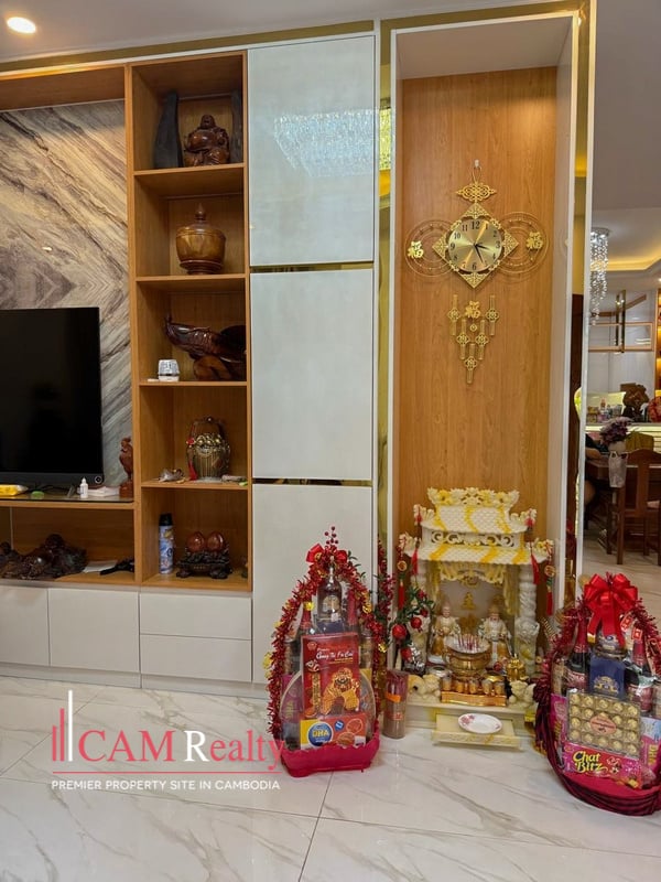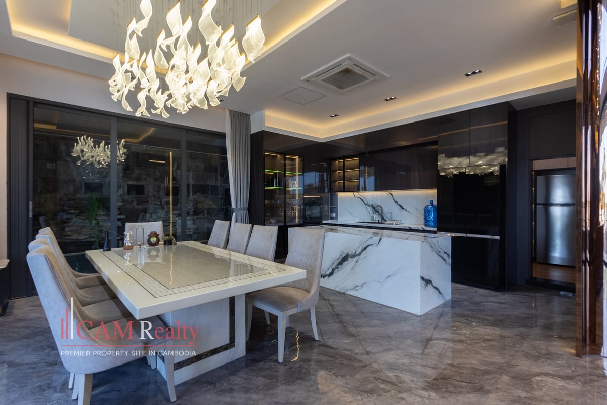 This is a spectacular, high-end villa designed for prestigious residential living. The property is offered fully furnished with exquisite taste and premium decor. It faces West, allowing residents to enjoy beautiful afternoon light and sunset views. With a massive layout, this home provides ultimate privacy and luxury. It is a perfect sanctuary for those seeking a grand lifestyle in Phnom Penh.