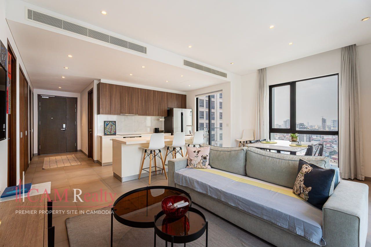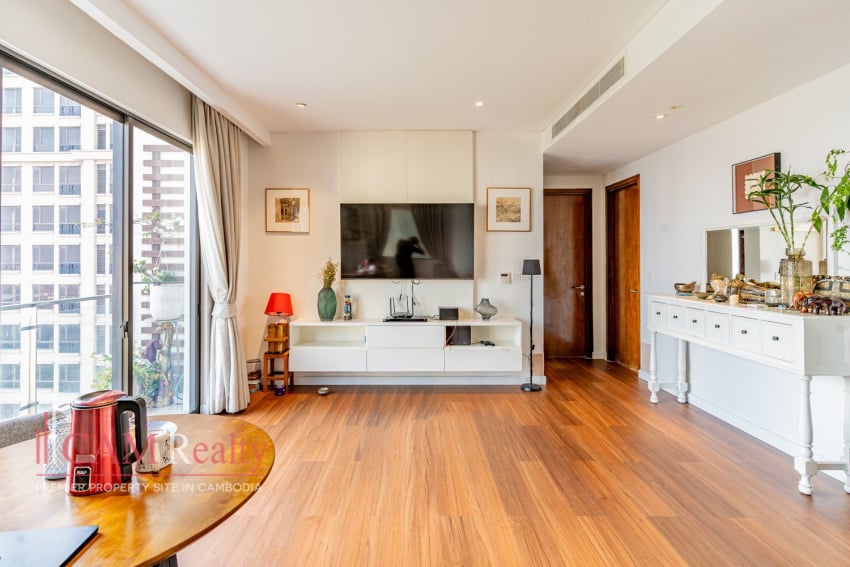 2 bedrooms condominium for sale in BKK1, Phnom Penh. In the upscale building next to Norodom Boulevard, this exquisite condominium is a Japanese-developed project, on the 24th level, facing northwest. The apartment is a generous 75.62 square meters in size. To ensure the well-being of its residents, the facility has a number of recreational amenities. Located in Sangkat Boeng Keng Kang Ti Muoy (BKK1), it is 1.6 kilometers from AEON Mall Phnom Penh and 350 meters from Chip Mong Noro Mall, 400 meters from Invictus International School, 750 meters from the Independence Monument.