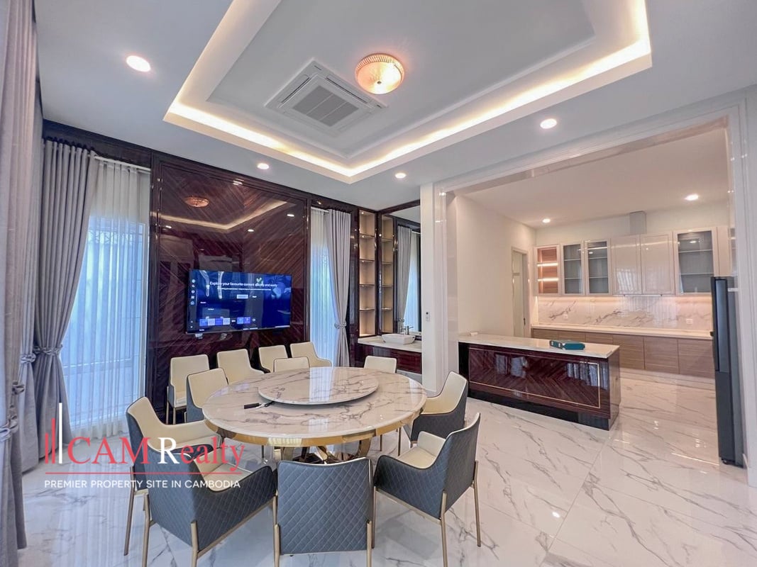 This is a spectacular, high-end villa designed for prestigious residential living. The property is offered fully furnished with exquisite taste and premium decor. It faces West, allowing residents to enjoy beautiful afternoon light and sunset views. With a massive layout, this home provides ultimate privacy and luxury. It is a perfect sanctuary for those seeking a grand lifestyle in Phnom Penh.