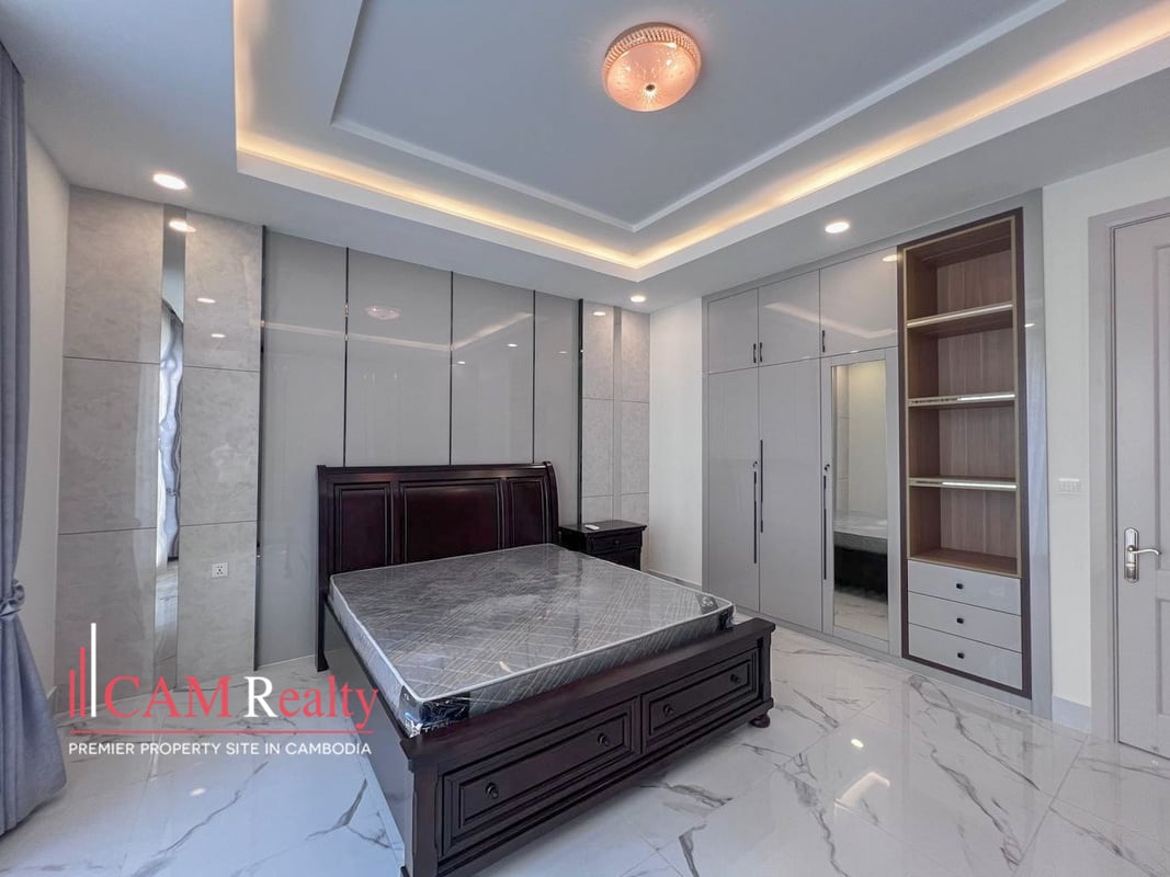 The villa is located in Sangkat Bak Khaeng, within the growing Khan Chroy Changvar. This area is known for its fresh air and peaceful atmosphere. It offers a quiet retreat away from the city’s heavy traffic. The district is rapidly developing with new infrastructure and riverside amenities. It provides a perfect balance between suburban tranquility and accessibility to the city center.