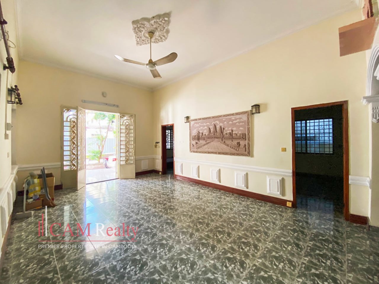 An impressive Single Villa is available for rent in the prestigious Daun Penh Area. This property is excellent for a corporate office or large family residence. It features five expansive bedrooms and six total bathrooms. The villa is offered unfurnished, allowing for complete tenant customization. This is a rare opportunity for a large, private space downtown.
