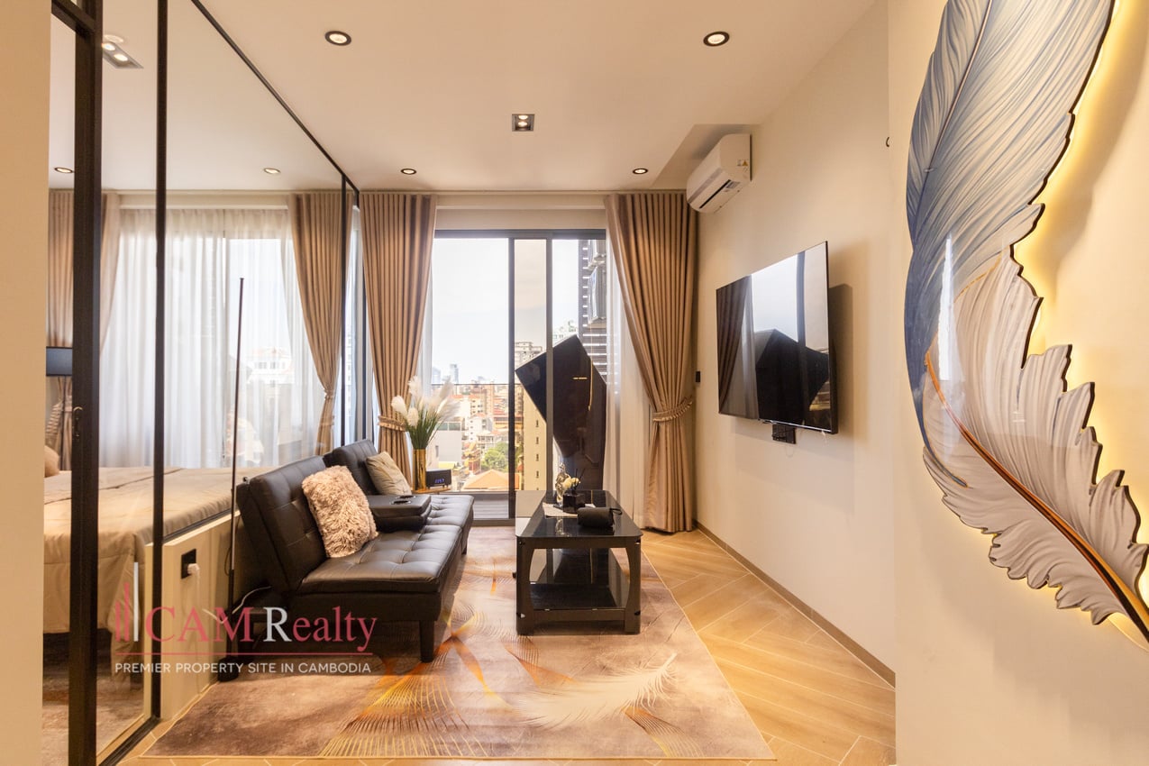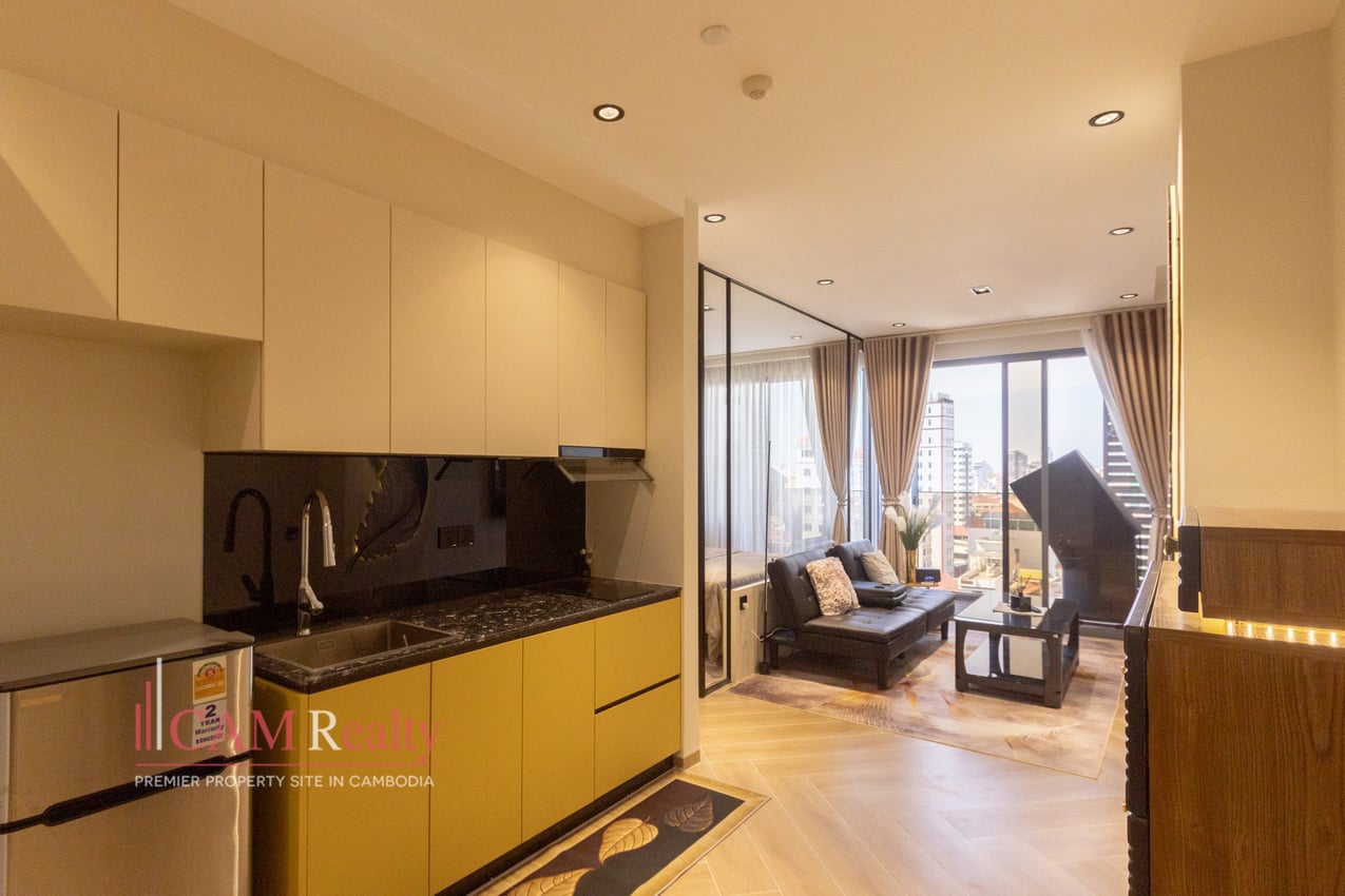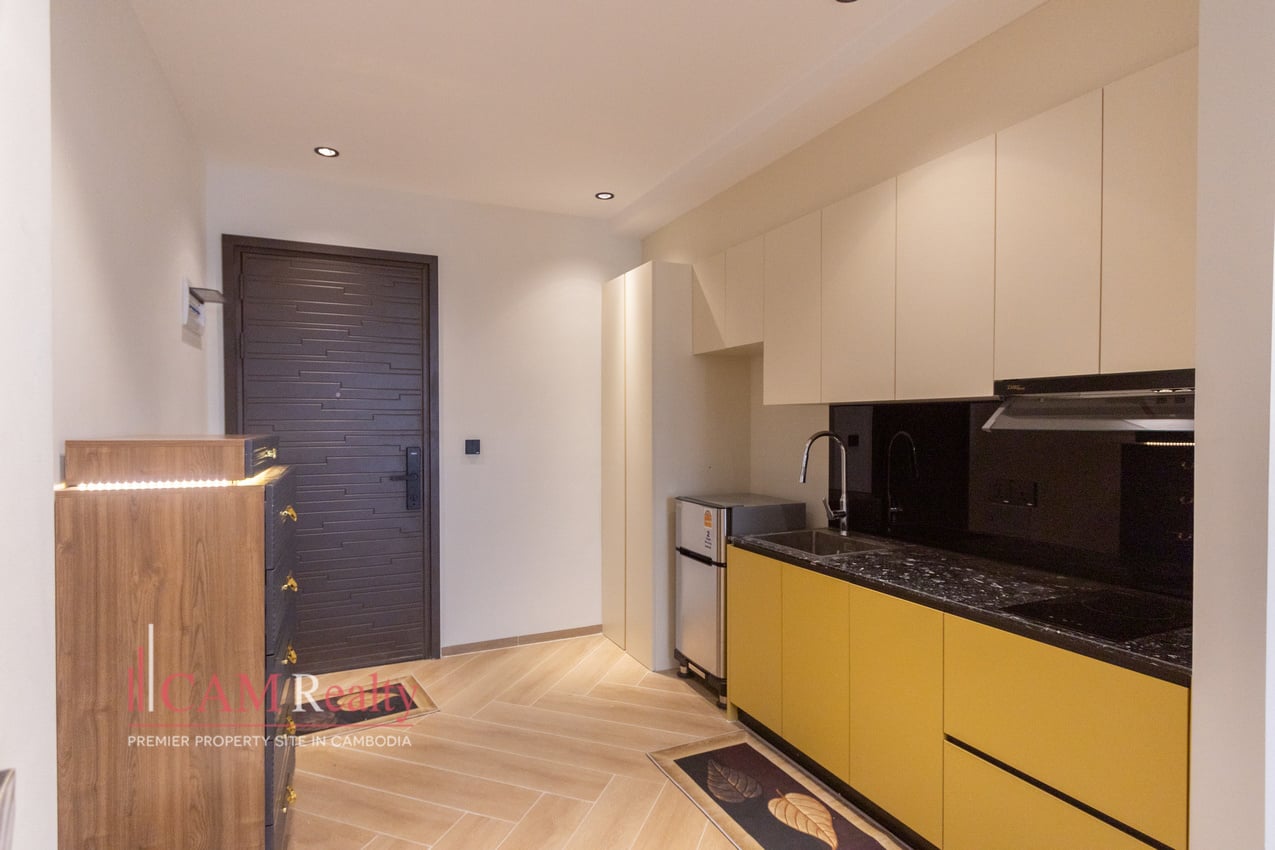 Studio serviced apartment for rent in BKK1 Phnom Penh. This residence is designed for an individual accustomed to premium living with amenities at the fingertips. It is offered fully furnished.