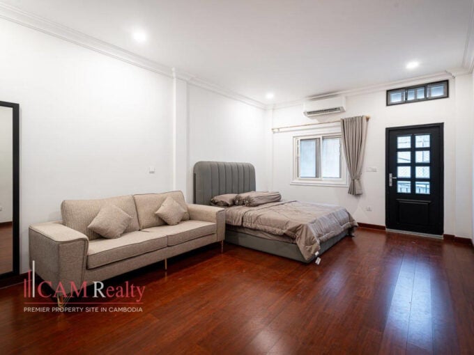 This charming renovated 1-bedroom apartment is ideally located along Riverside in the heart of Phnom Penh’s Daun Penh district. Situated on the 1st floor, the apartment offers a comfortable and functional layout with a cozy living area, a separated kitchen, and a private balcony overlooking the river — perfect for enjoying the city’s vibrant atmosphere.