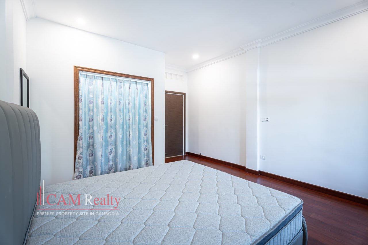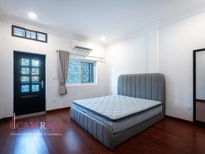 Spacious and western duplex style 4 bedrooms renovated apartment for rent in Phnom Penh . This nice house is located in green and quiet area of Toul Kork area. This house just spend 10 minutes walk from TK Avenue Mall and surrounding there have a lot of western restaurants, International School, Coffee shop and Business Center…etc.