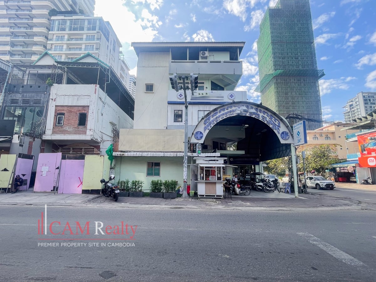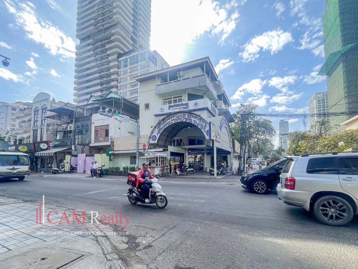 This commercial space is located in the heart of BKK1, Phnom Penh. Perfectly suited for a restaurant or café business. The building offers four floors and a north-facing frontage. It includes four bedrooms and five bathrooms. Unfurnished, allowing full customization to your style. The construction timeline and lease terms are negotiable.
