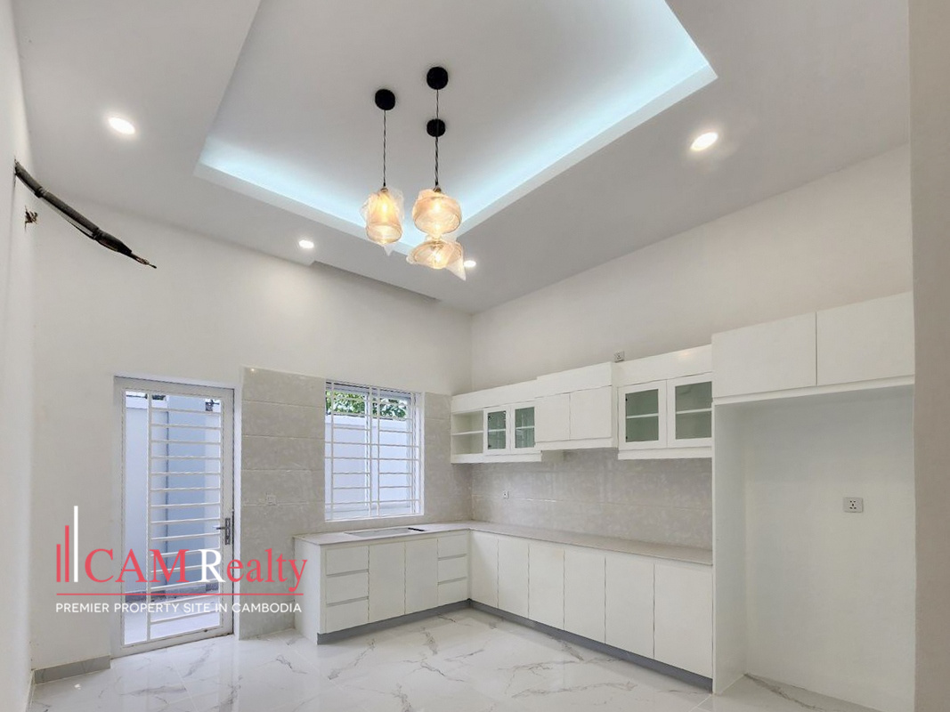 The villa is located in Sangkat Bak Khaeng, within the growing Khan Chroy Changvar. This area is known for its fresh air and peaceful atmosphere. It offers a quiet retreat away from the city’s heavy traffic. The district is rapidly developing with new infrastructure and riverside amenities. It provides a perfect balance between suburban tranquility and accessibility to the city center.