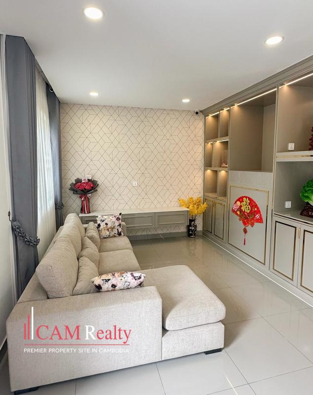 4 Bedroom link villa for sale in Peng Huoth The Star Mera Garden (50M) – Phnom Penh, offering a comfortable living experience in a gated community with a beautifully landscaped environment. Located in Peng Huoth The Star Mera Garden., Sangkat Cheung Aek, Khan Dangkao, Phnom Penh. along 50m street, Take 15 minute from Techo International Airport. And just 7 minute from ÆON Mall Mean Chey.