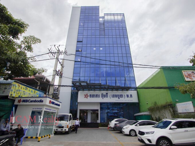 Secure modern Office Space for rent in Chbar Ompov. This prime location is situated along National Road 1. The building features a total of 11th available floors. This space is perfect for businesses seeking high-quality offices. The rental includes the Management Fee and water supply. It is an excellent choice for a professional corporate headquarters.