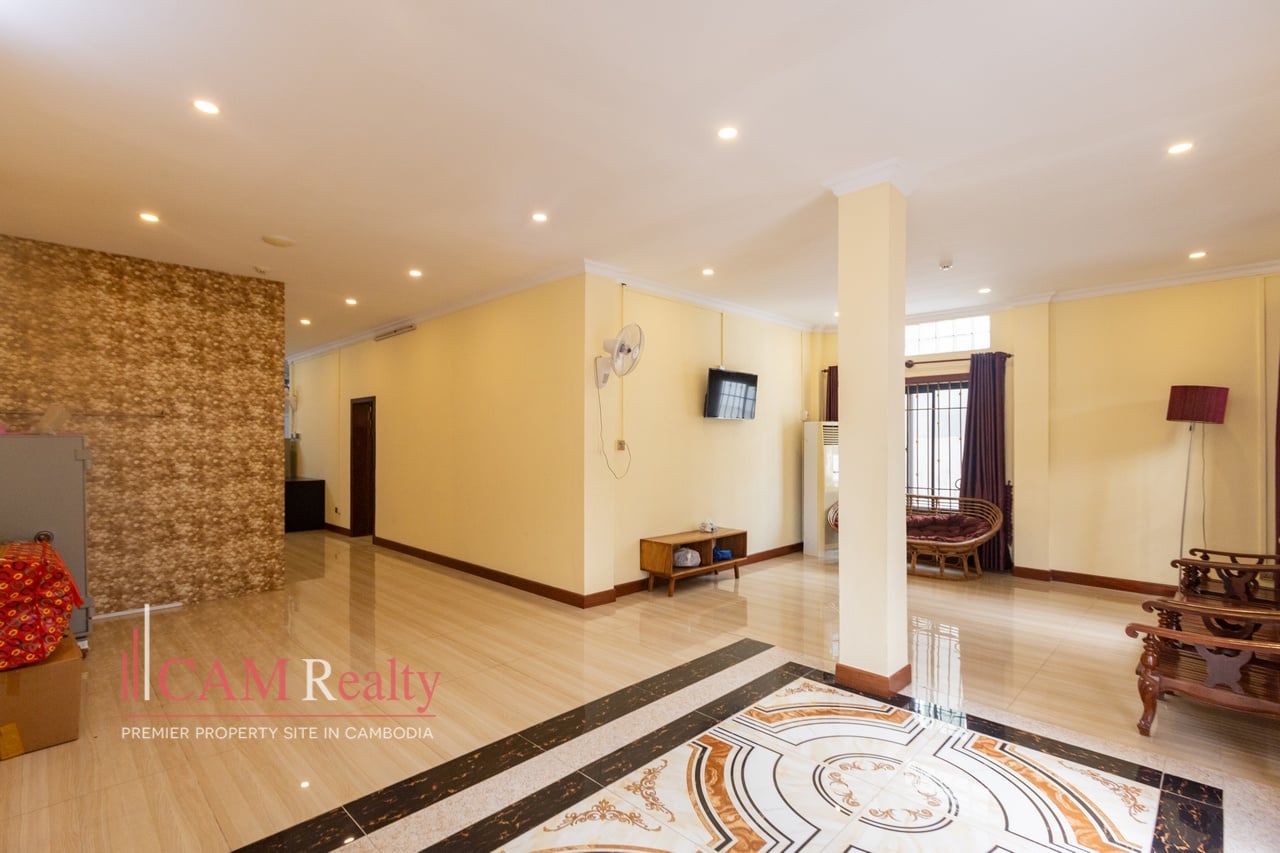Located in Sangkat Phsar Thmei Ti Bei, Khan Daun Penh. The area is a busy commercial and residential zone. Situated near Preah Sisowath High School. Surrounded by shops, offices, and local services. Easy access to main roads and city attractions.
