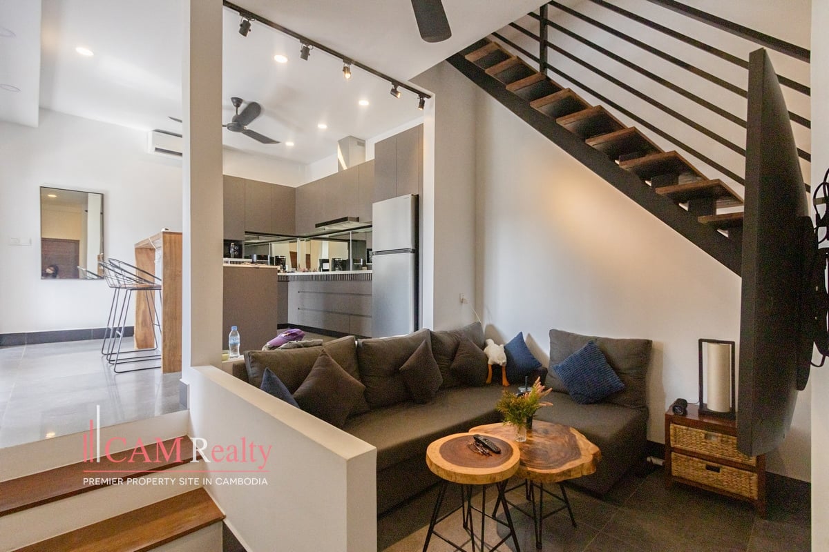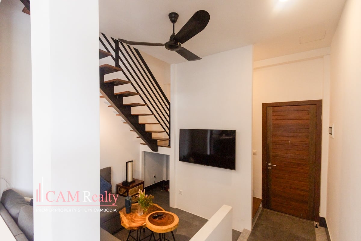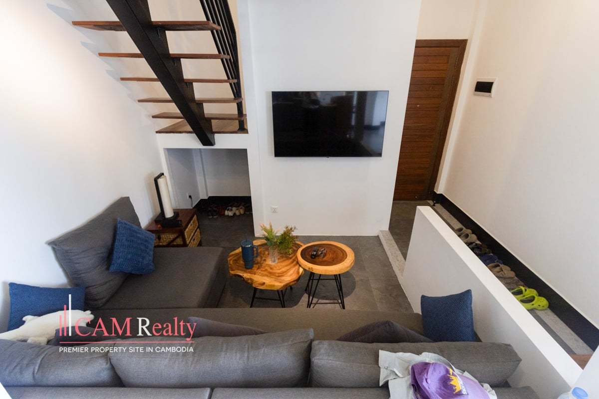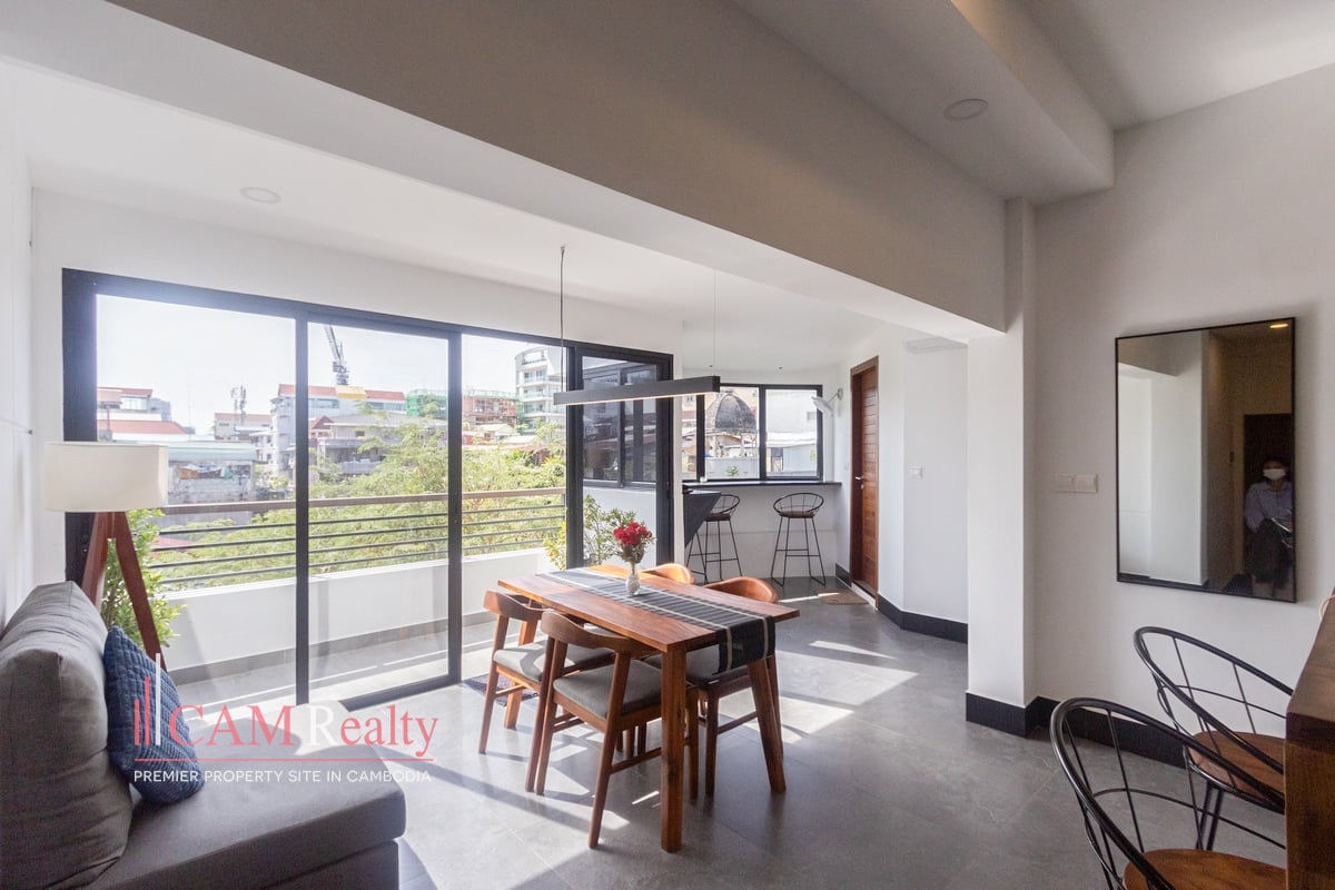 Freshly Renovated 2 Bedroom Apartment With Private Jacuzzi and Rooftop Terrace For Rent in Daun Penh. This freshly renovated two-bedroom apartment is located in Phsar Kandal, Daun Penh, one of Phnom Penh’s most vibrant central areas. Just minutes from Riverside, Wat Phnom, and Independence Monument, the property is within walking distance of cafés, shops, and lifestyle amenities, while still offering a quiet residential atmosphere.