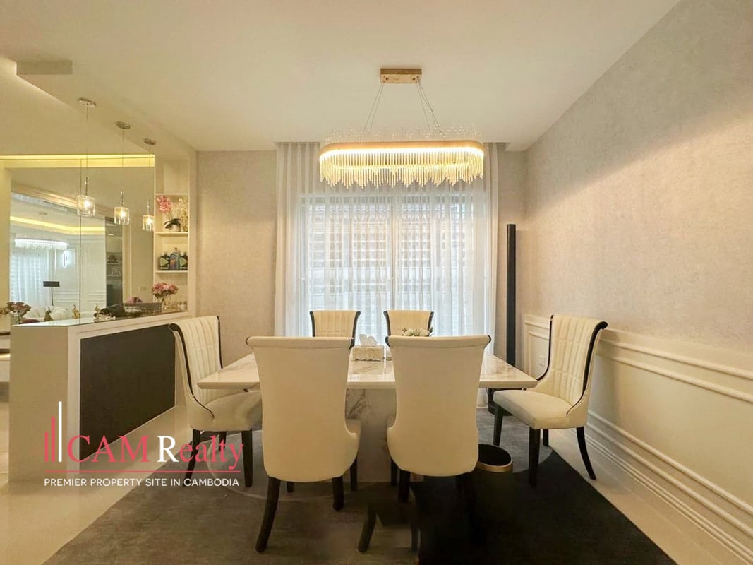 Discover an elegant and spacious 3-bedroom serviced apartment in the heart of Tonle Basak. This stunning residence features a generous 214 sqm of living space, combining modern design with warm wooden accents for a cozy yet luxurious atmosphere.