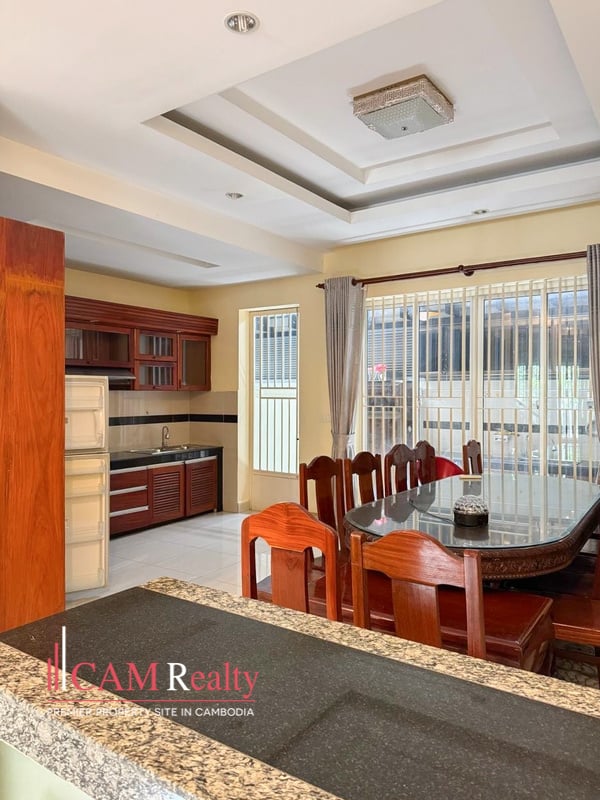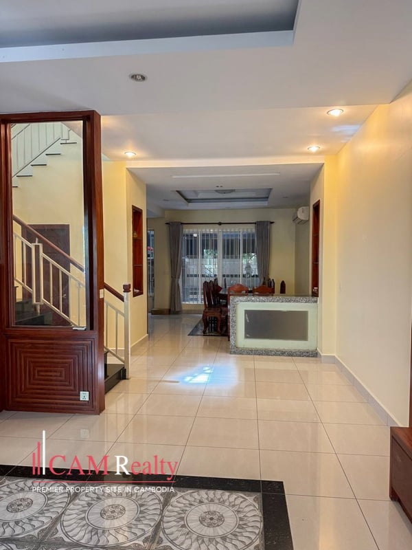 This link house fot rent is located in a rapidly developing area along Hus Sen Blvd., Sangkat Chak Angre Krom, Khan Mean Chey, Phnom Penh.