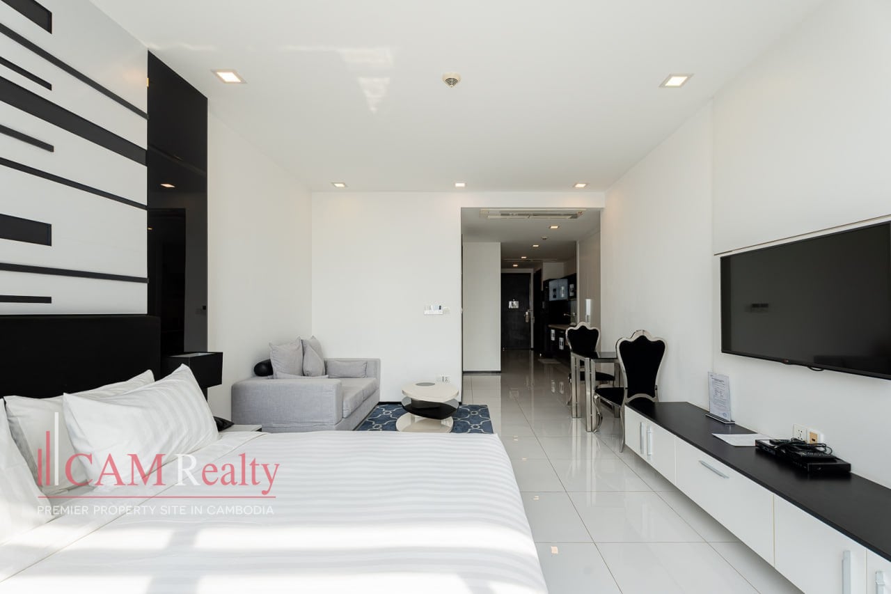 Studio serviced apartment for rent in Sangkat Toul Tum Poung1, Russian market area, surrounded by quiet, nice and safe environment. It locates in the the middle of city which close to business center, market, mini mart, modern coffee shops, pubs, international school, bus terminal, NGOs..etc. It is 350 meters from Russian market, 5 minutes to go to BKK1 area, 15 minutes to go to Riverside area.