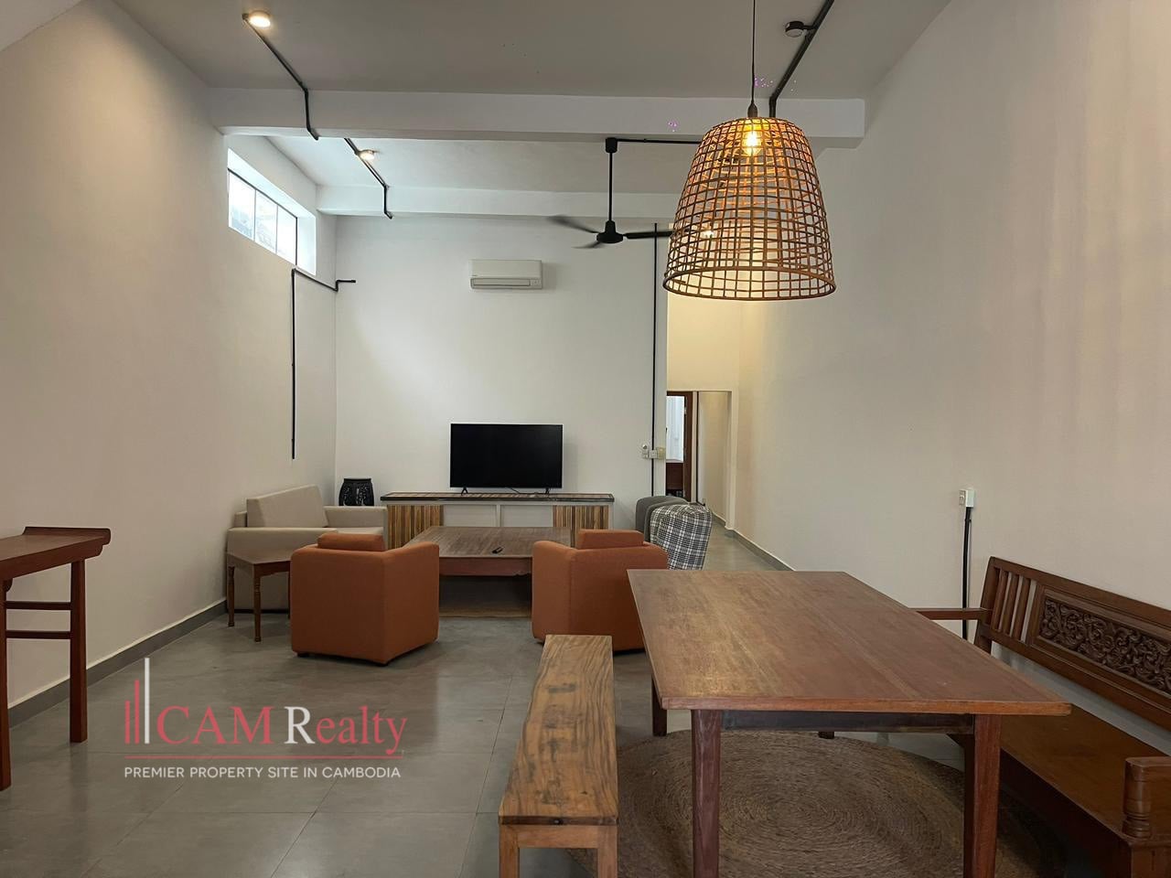 1 Bedroom Duplex Renovated Apartment For Rent in Daun Penh. This beautifully renovated 1-bedroom duplex offers a modern and comfortable living space in the heart of the city. With its thoughtfully designed layout and stylish finishes, this apartment is perfect for individuals or couples seeking a trendy and convenient lifestyle.