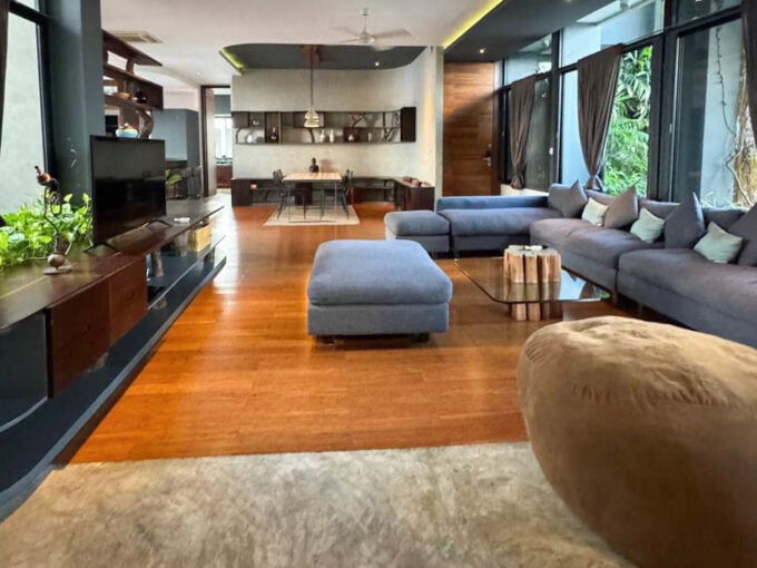 Discover an elegant and spacious 3-bedroom serviced apartment in the heart of Tonle Basak. This stunning residence features a generous 214 sqm of living space, combining modern design with warm wooden accents for a cozy yet luxurious atmosphere.