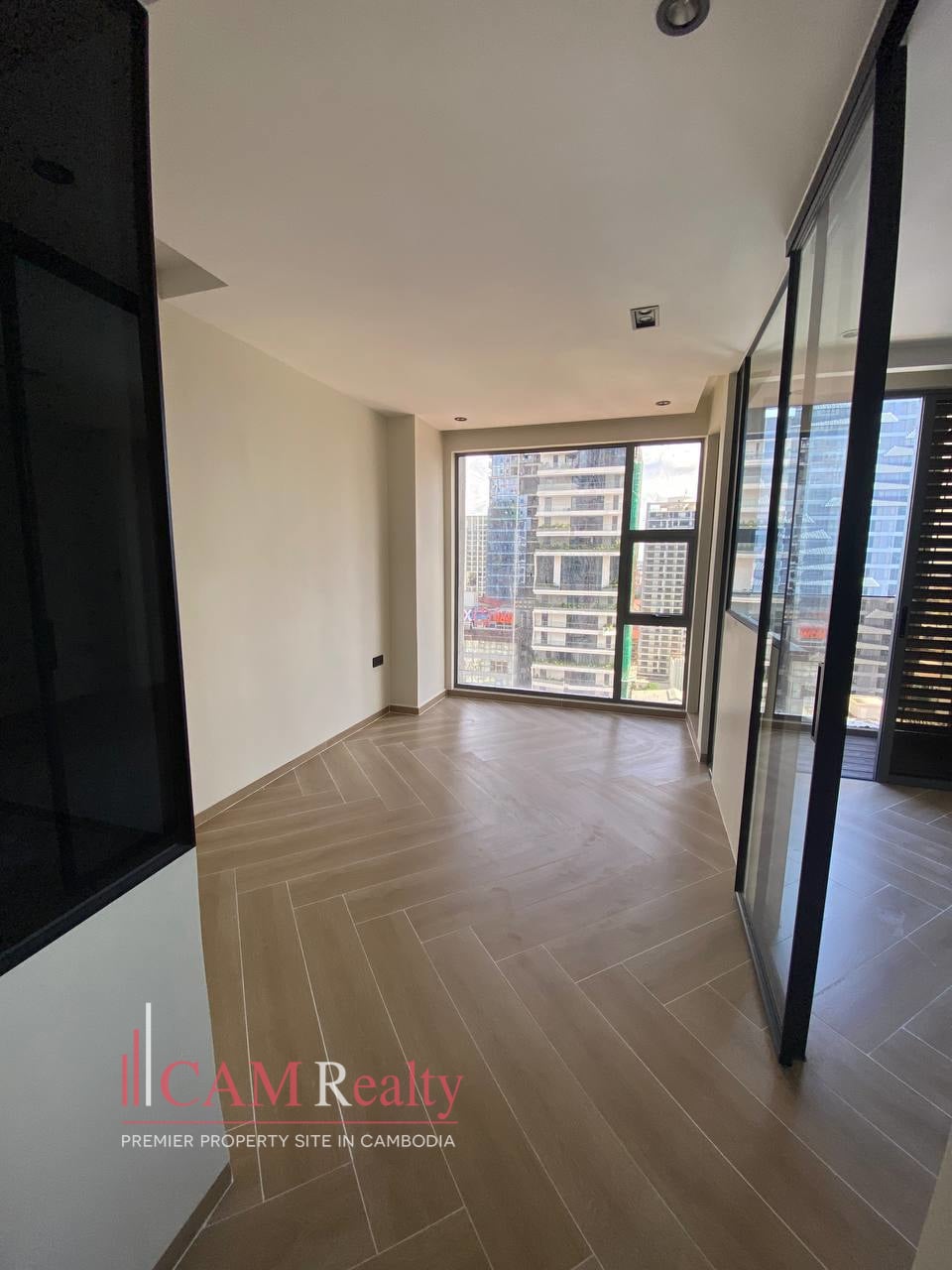Developed by Megakim World Corp. Ltd, the 45-story condominium offers premium facilities including an infinity sky pool, fitness gym, lobby café lounge, kids’ playground, creative play lounge, and rooftop garden deck. The building includes 5 elevators, 5 floors of parking, 24/7 security, and card-access elevators. Completed in Q4 2024, it is a modern residence in Phnom Penh’s most prestigious neighborhood.