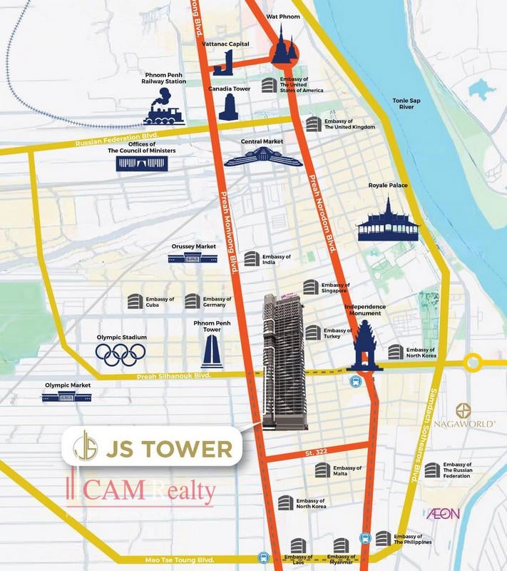 CAM Realty is a real estate agency based in Phnom Penh, Cambodia. We offer sales and rental services of serviced apartments, apartments, project/ resell condominiums, villas, gated community villas/houses, office space, and other real estate properties throughout Phnom Penh.