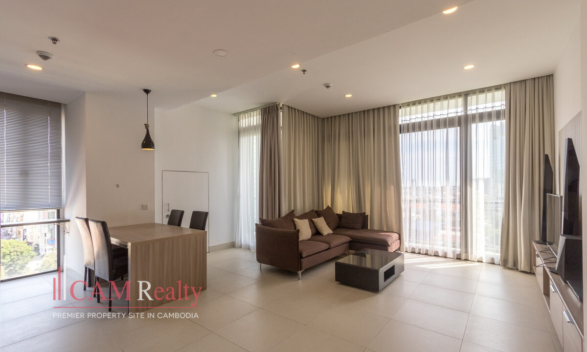 2 bedroom apartment for rent in Daun Penh – Phnom Penh. This 110 sqm apartment offers the full set of furniture. It features an open-plan living room with a lounge set, a coffee table, a big private balcony next to the lounge area, a 4-seater dining table, an L-shaped kitchen with an exhausted hood, a…