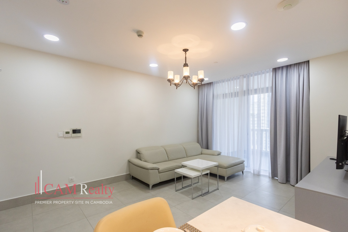 Modern style 1 bedroom serviced apartment for rent in BKK1 area – Phnom Penh. This luxury apartment is measuring 45 sqm and inclusive security guard 24/7, maintenance serviced, garbage collection fee, water usage 20m³ per month, Wi-Fi and TV cable, cleaning serviced 1 time per week and bed linen change 2 times per month as well. Plus, you also get complimentary access to its entertaining facilities(swimming pool, fitness center, steam & sauna).
