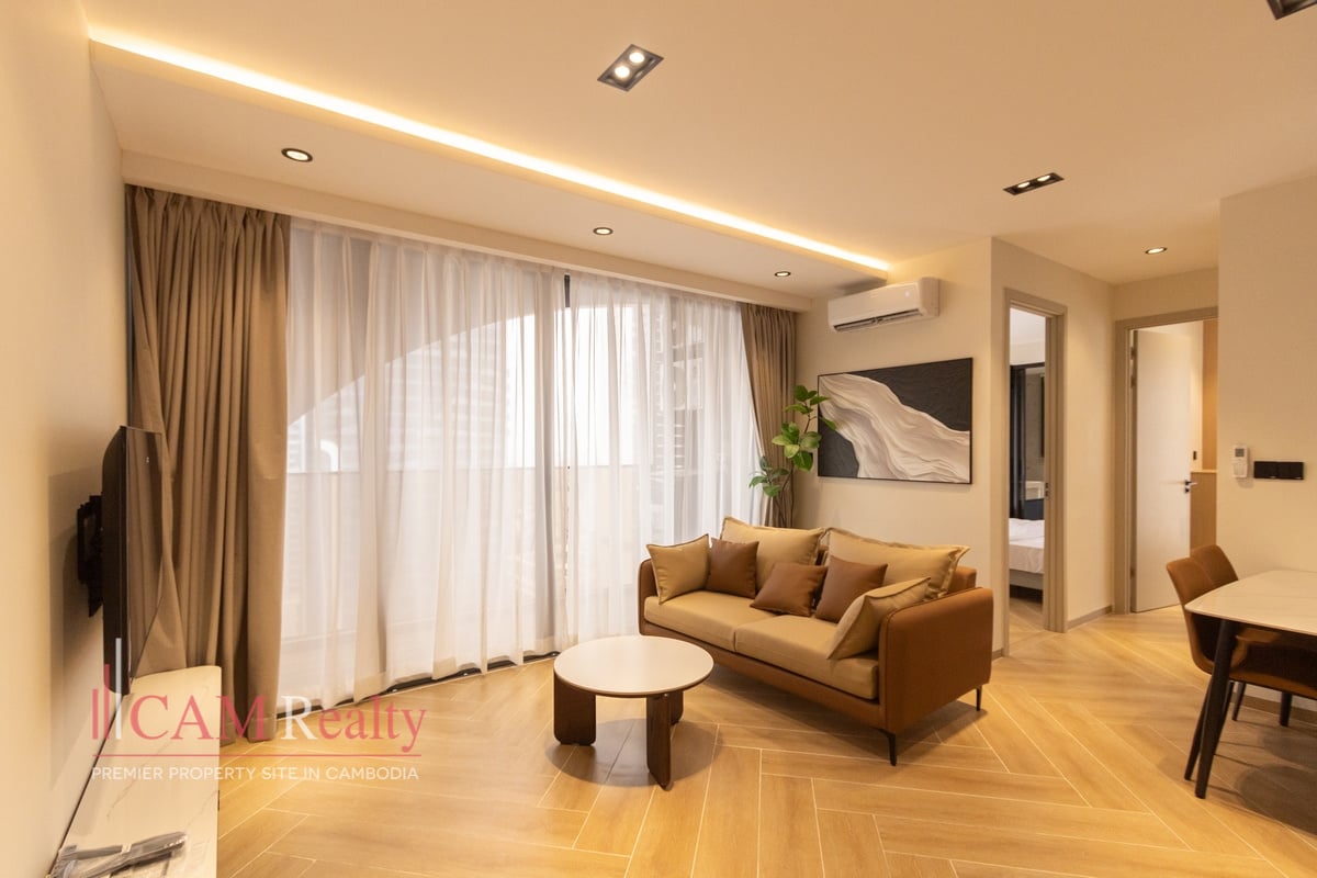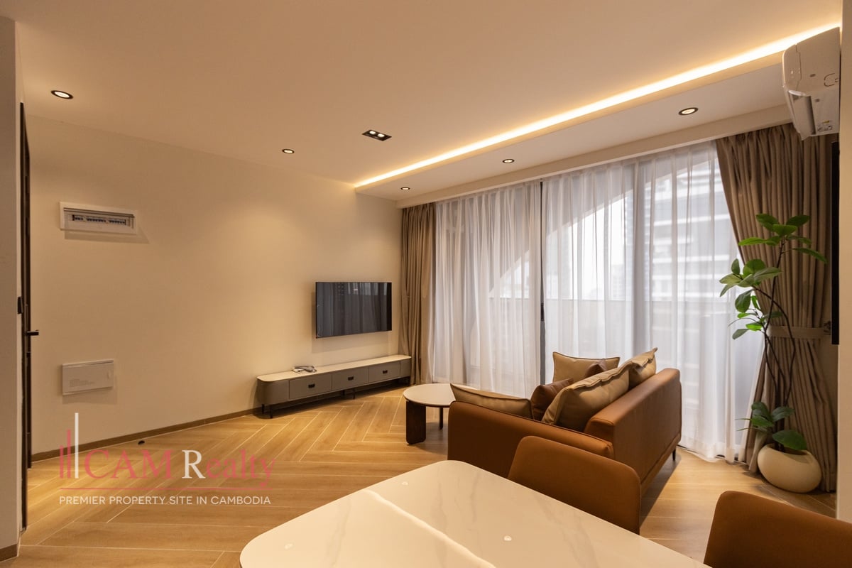 Italian Designed 2 Bedroom Condo For Rent in Southern Tonle Basak. This premium residence offered to the market fully furnished with access to wide range of leisure facilities on the rooftop to accommodate residents.