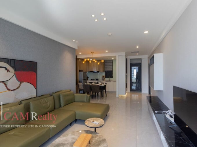 Modern style 2 bedrooms serviced apartment for rent in BKK1 Phnom Penh. It locates in southern part of BKK1 area near to Thai Huot market and starbuck coffee shop. And, from Aeon mall Phnom Penh only 6 min by drive. It comes with amazing rooftop pool and gym.