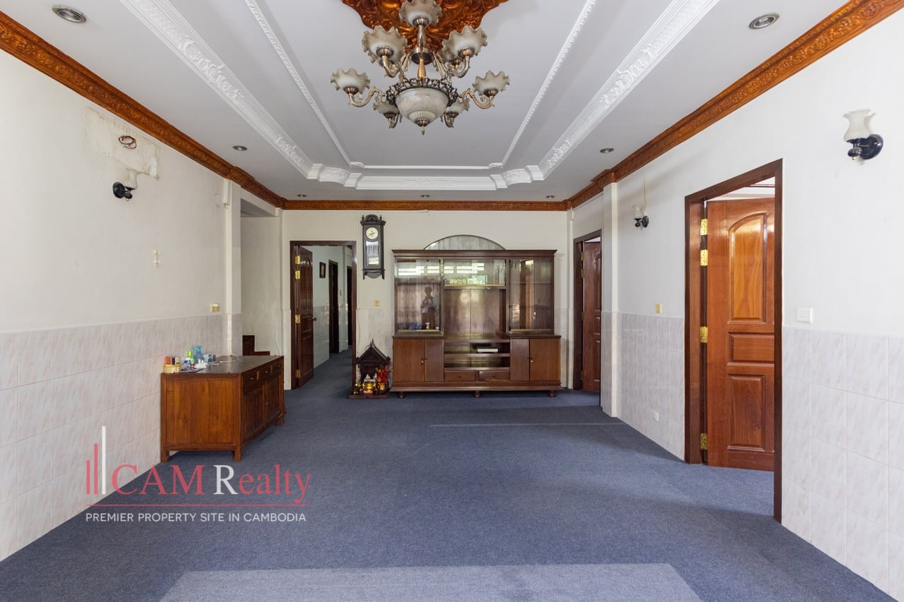 This 9-bedroom villa is located in Boeng Tumpun. The property spans 8m by 24m. It rises across four floors. The villa is semi furnished. It suits both office and residence use. The layout supports flexible business operations. It also offers comfortable family living.
