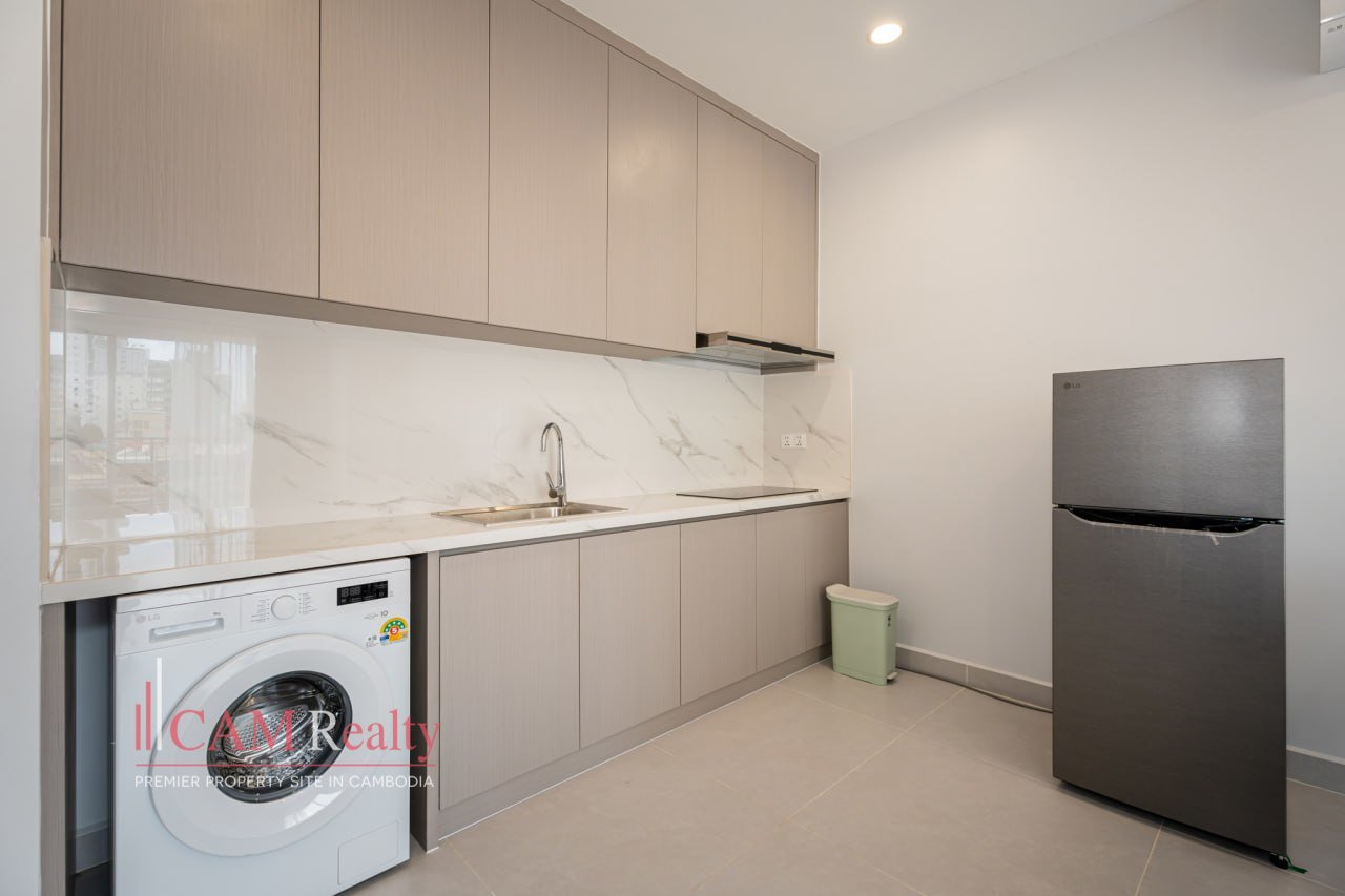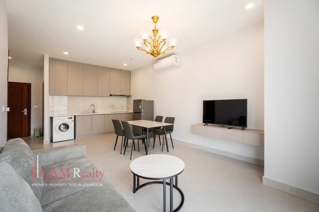 1 Bedroom Serviced Apartment For Rent in Sangkat Olympic (Next to BKK2). This serviced apartment offers a peaceful living environment just steps from BKK2. Ideal for singles or couples, the apartment provides convenience, comfort, and privacy in the heart of the city. Key services like weekly cleaning, Wi-Fi, and 24/7 security are included.