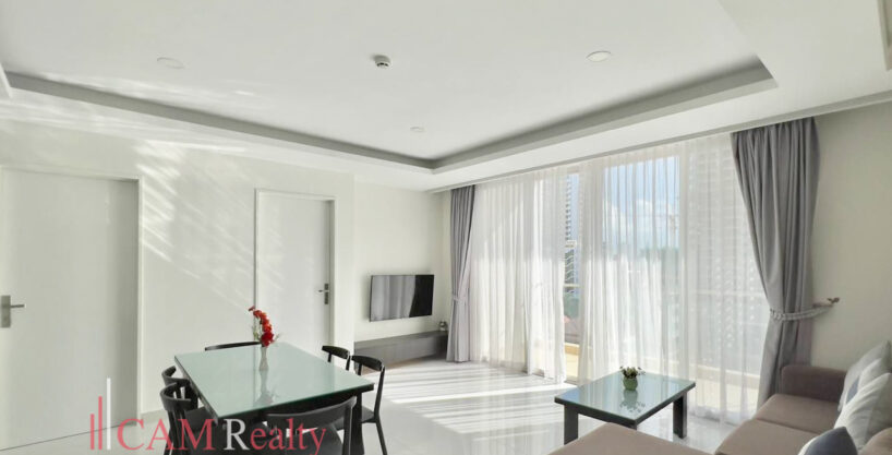 2 bedrooms serviced apartment for rent in the heart of the BKK1 area, the prime location of Phnom Penh, covered by many European and Japanese restaurants, modern coffee shops, supermarkets, international schools, NGOs, embassy, mini-mart, pubs…etc. Just 4 minutes by walking from Independence Monument and 8 minutes from the Riverside area. It comes with a nice swimming pool and gym.