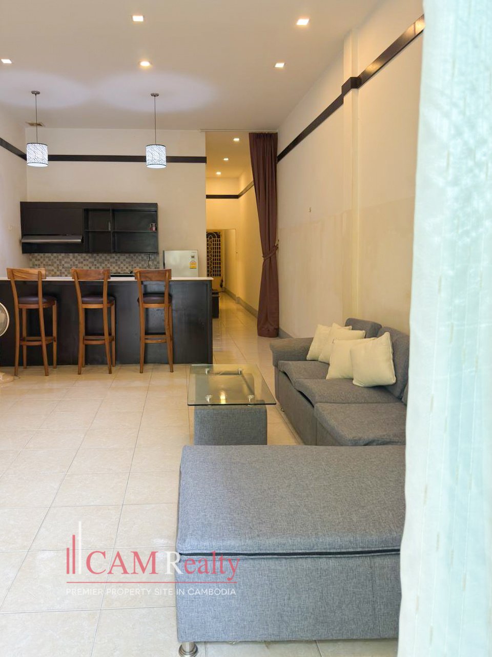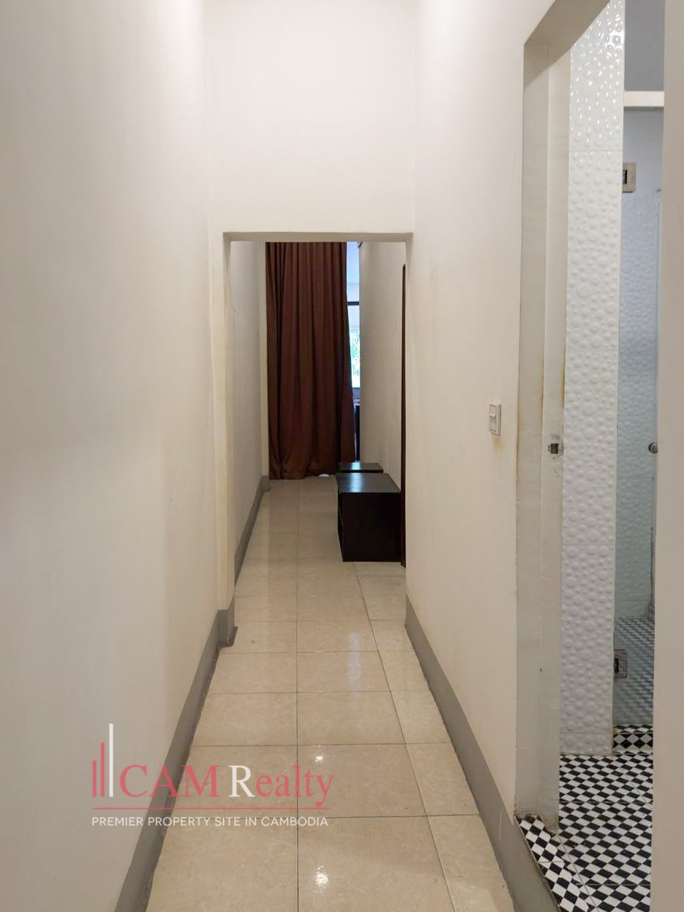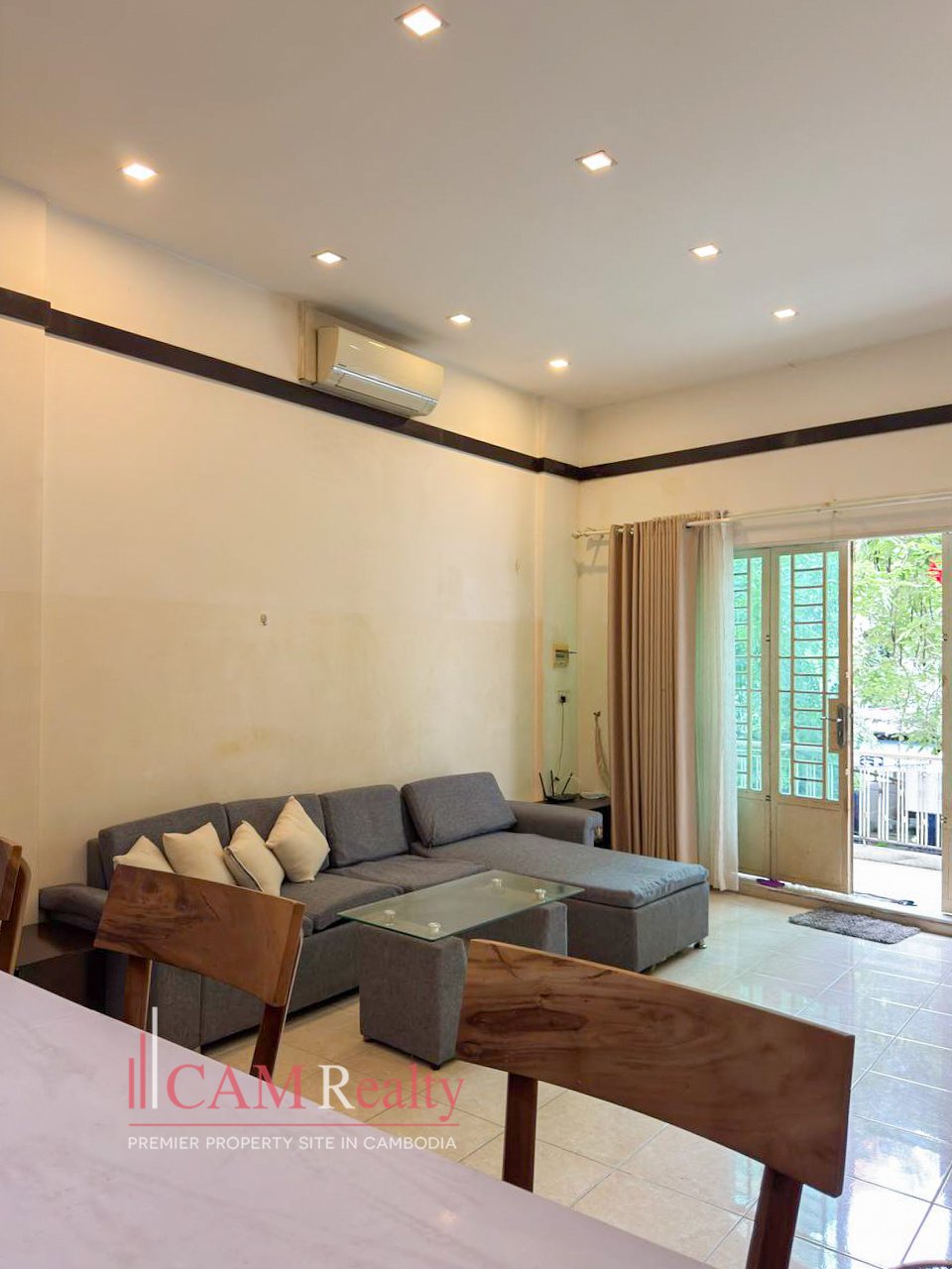 Modern style 2 bedrooms renovated house for rent in Riverside area – Phnom Penh. This townhouse is on the 3rd floor in a shopfront house in a convenient area. Just spend 5 minutes in a public garden, next to the banks, close to Wat Phnom and Night market, coffee shop, and mini-mart.
