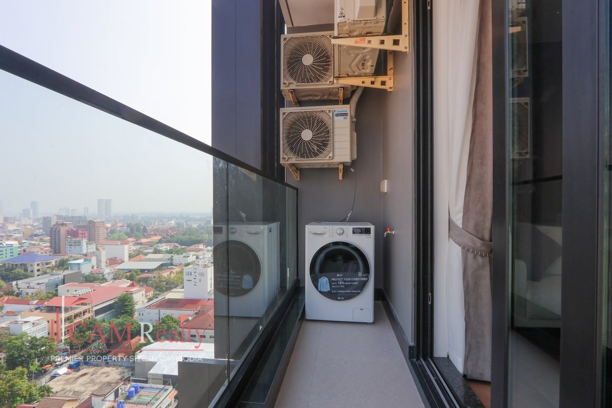 Luxurious 1 bedroom duplex apartment for rent in Daun Penh – Phnom Penh. This apartment measures 68 square meters and offers you an opportunity to live a luxurious lifestyle experience right in the center of the city. The property also features a rooftop swimming pool and a good-sized fitness center to accommodate its tenants. Located 120m from the Embassy of Singapore, 600m from the Embassy of the Republic of Indonesia, 750m from Sathapana Tower, 1km from Amass Central Tower, 1.5km from the Embassy of Australia, 1.8km from EXCHANGE SQUARE, 2.1km from the Embassy of the United States of America, 2.3km from Vattanac Tower and Canadia Tower.