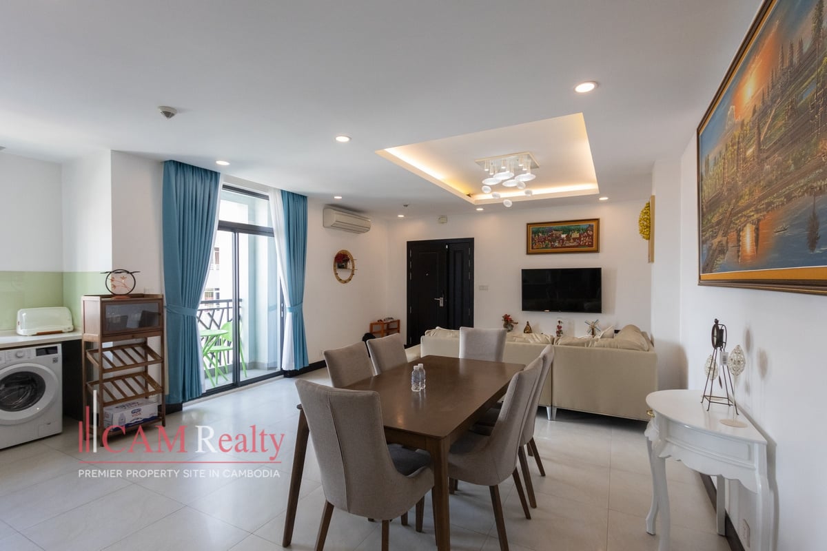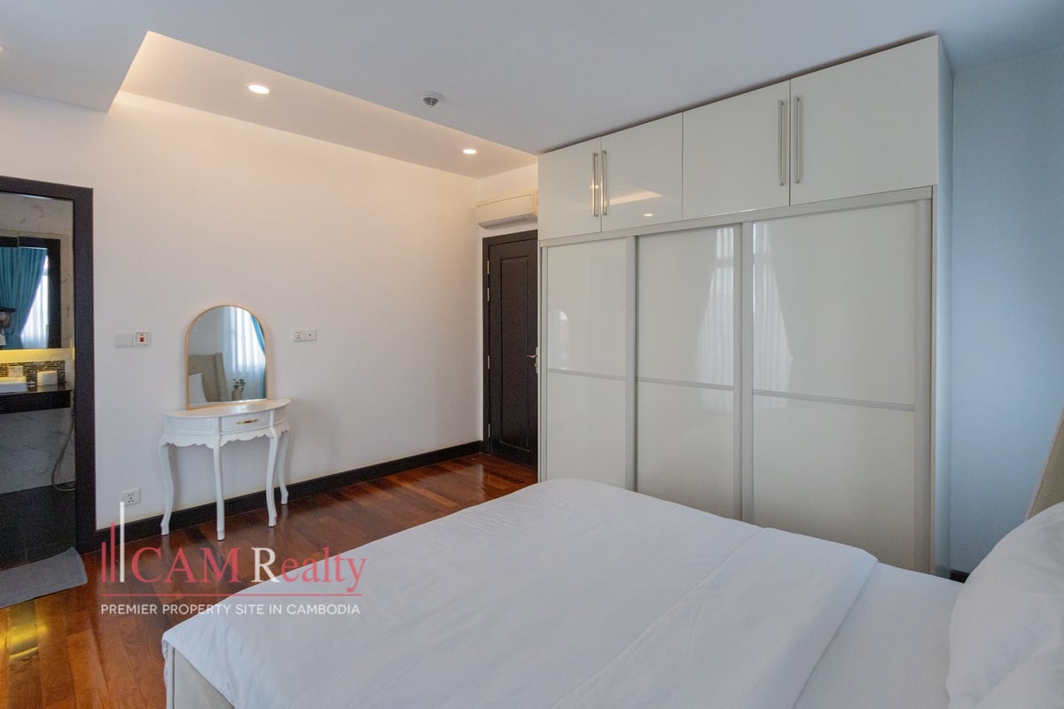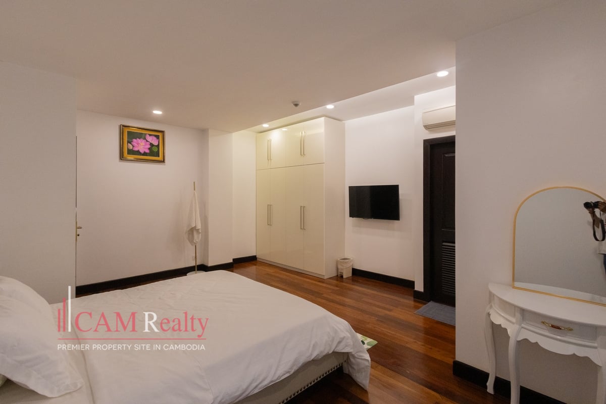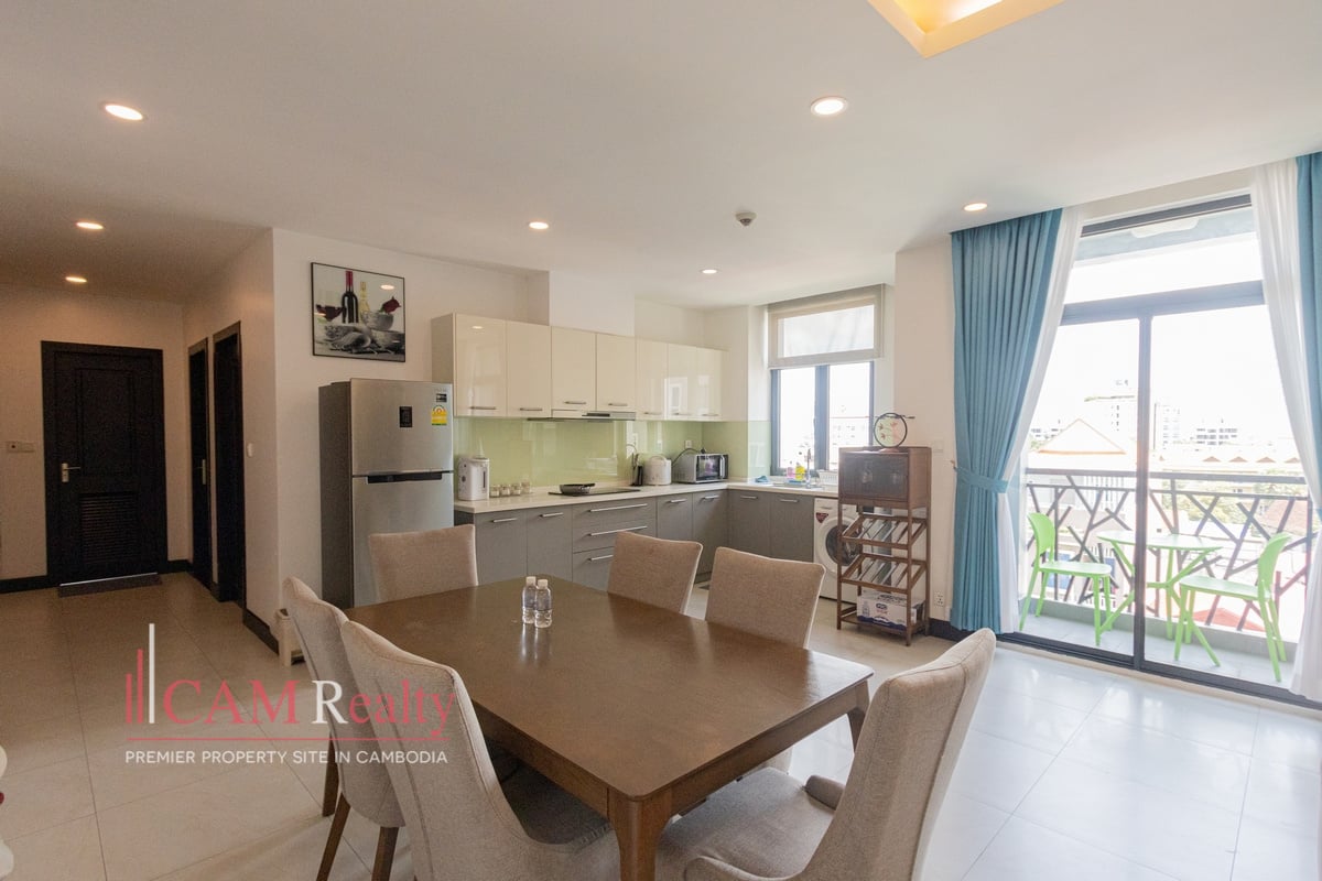 Spacious 3 bedrooms serviced apartment for rent in Sangkat Srah Chak, Khan Daun Penh, Phnom Penh. This apartment is located in convenience zone, cleaned, safe and very close to business center, supermarket, restaurants and international school…etc. It’s just spend 10 minutes from Vattanac Capital and Eden Garden Mall. The apartment become with beautiful rooftop and very nice swimming pool attached fitness center.