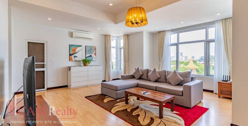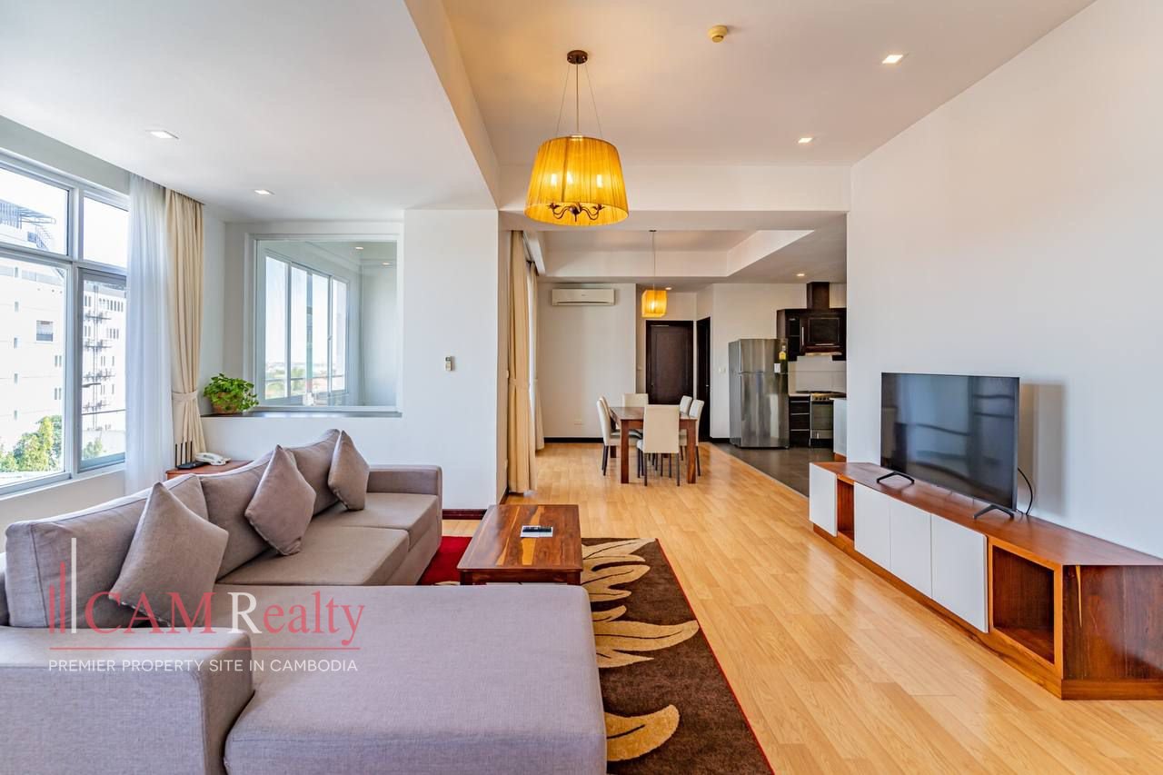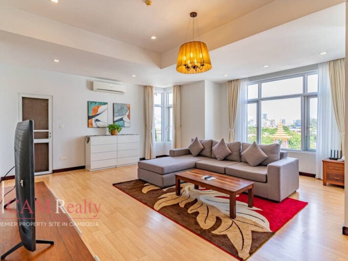 3 Bedroom Serviced Apartment For Rent in Tonle Basak. This spacious apartment offers luxury living near the Independence Monument. It is ideal for families or professionals seeking comfort and convenience, with access to a range of high-end services.