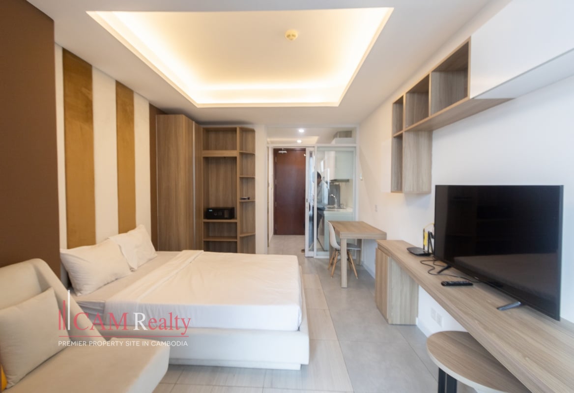 34th Floor Studio Condo For Rent in The Penthouse Residence. This modern studio condo is located on the 34th floor of The Penthouse Residence, directly across from AEON Mall Phnom Penh. It offers a stylish living space within one of Tonle Basak’s most sought-after developments.