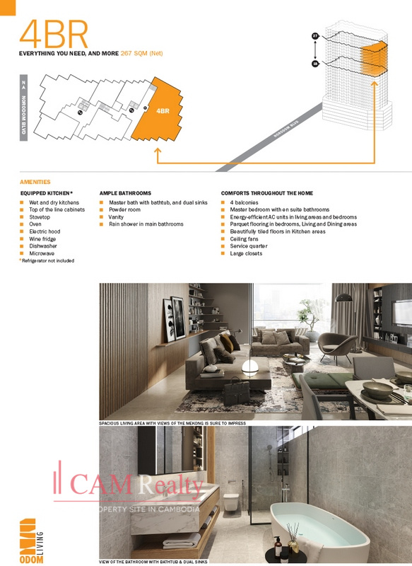 4 Bedroom Condo For Sale in ODOM. This 4-bedroom condo for sale in ODOM offers a rare combination of luxury, space, and sustainability within Phnom Penh’s most forward-thinking mixed-use development. With LEED Gold pre-certification, ODOM emphasizes high-quality living supported by exceptional amenities, including Odom Square, a pool, gym, playground, bar and deck, six Sky Villages, and an exclusive members-only club. Residents benefit from 24/7 security and full access control. Completion is set for 2027, with units delivered fully finished and supported by flexible payment plans.