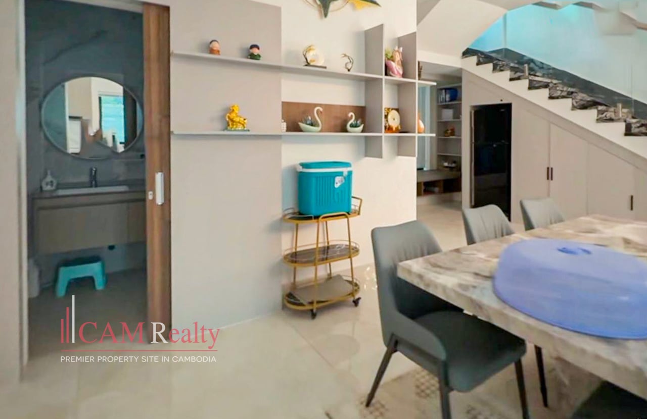 The villa is located in Sangkat Veal Sbov, Khan Chbar Ampov. This area offers a peaceful residential environment. It provides convenient access to nearby local amenities and main roads. The neighborhood is suitable for long-term family residence.