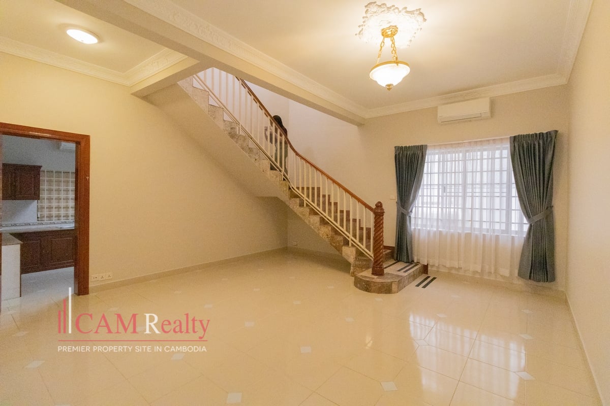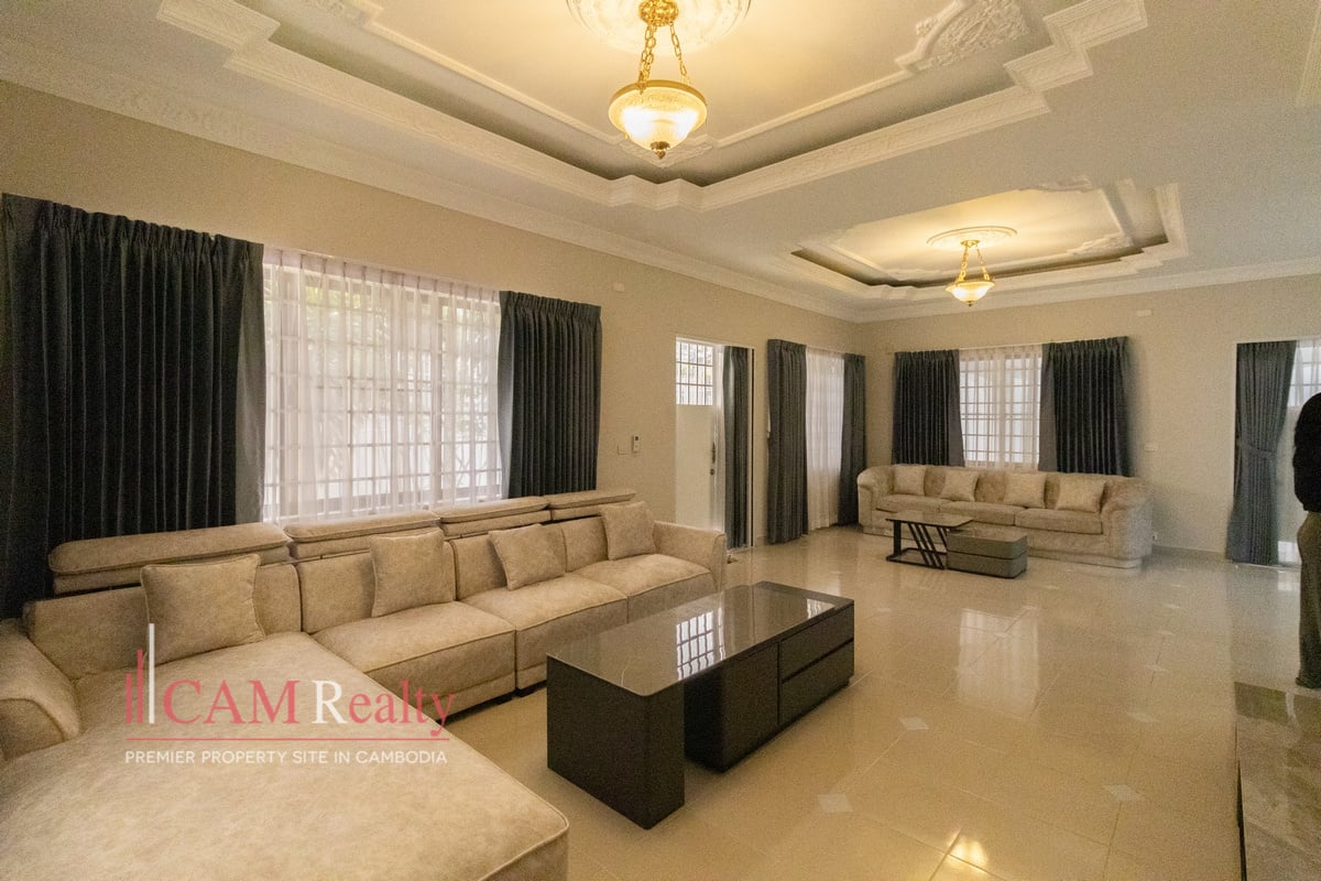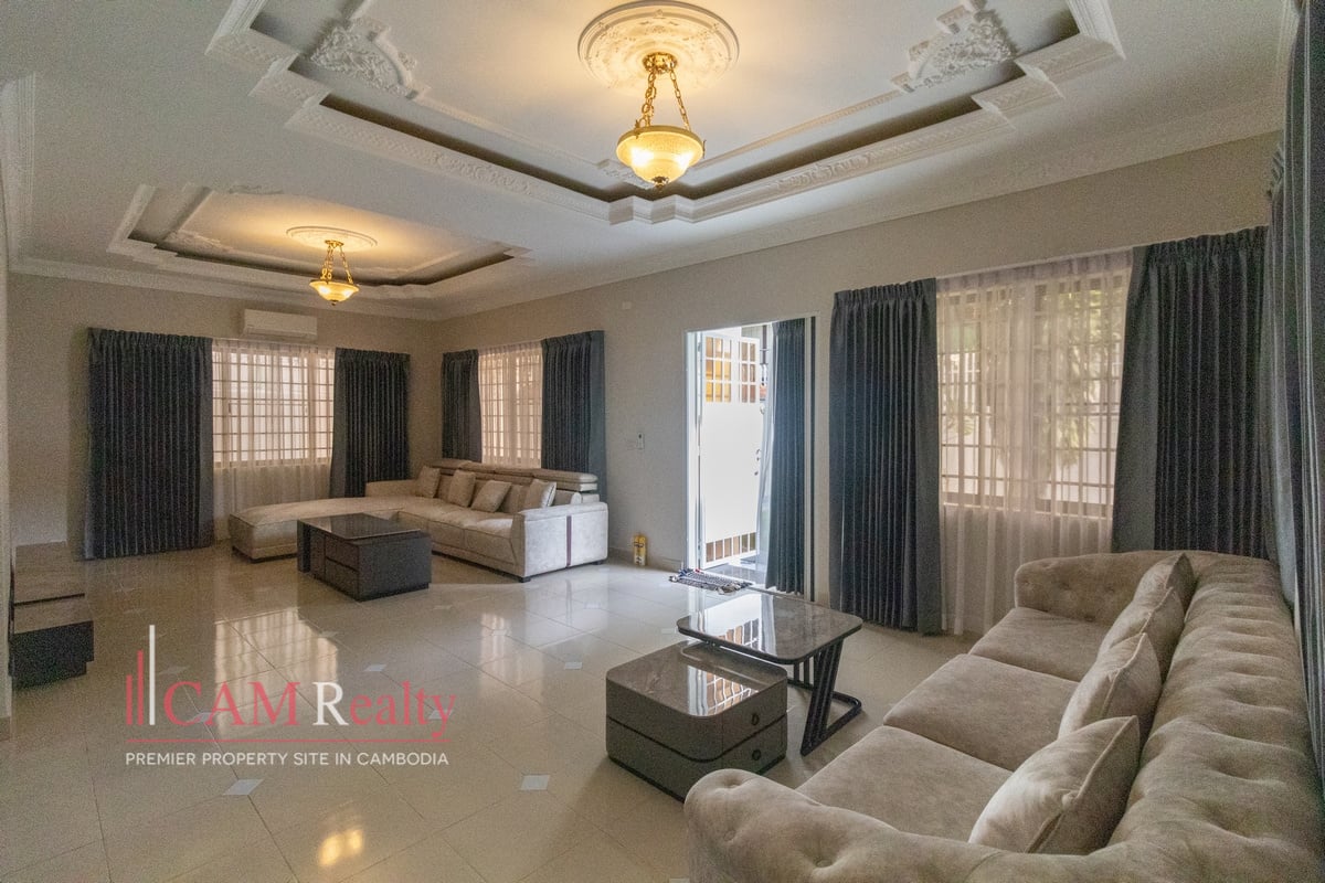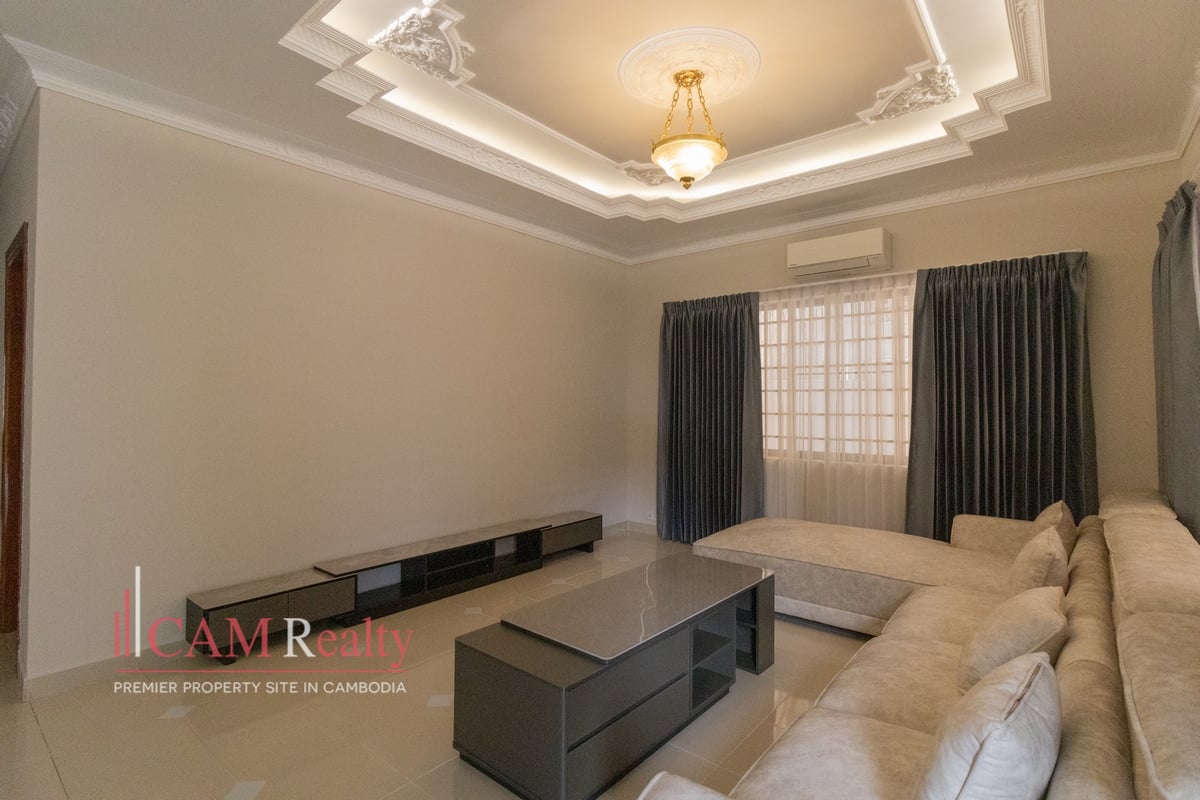 4 Bedroom Villa For Rent in BKK1. It offers a comfortable residential environment with spacious interiors and modern furnishings. The property is fully furnished, featuring bright living spaces and a welcoming atmosphere. Ideal for families seeking privacy and convenience in one of Phnom Penh’s most prestigious areas.