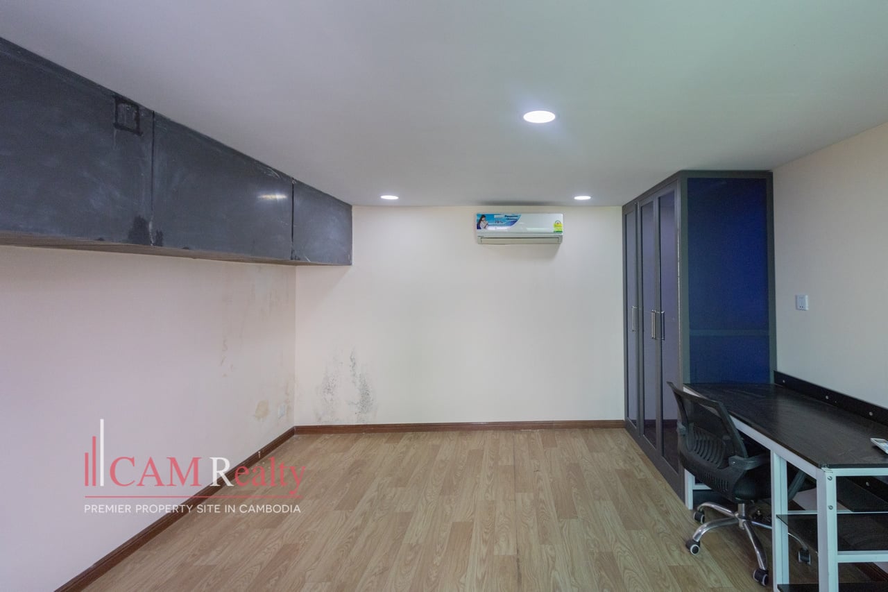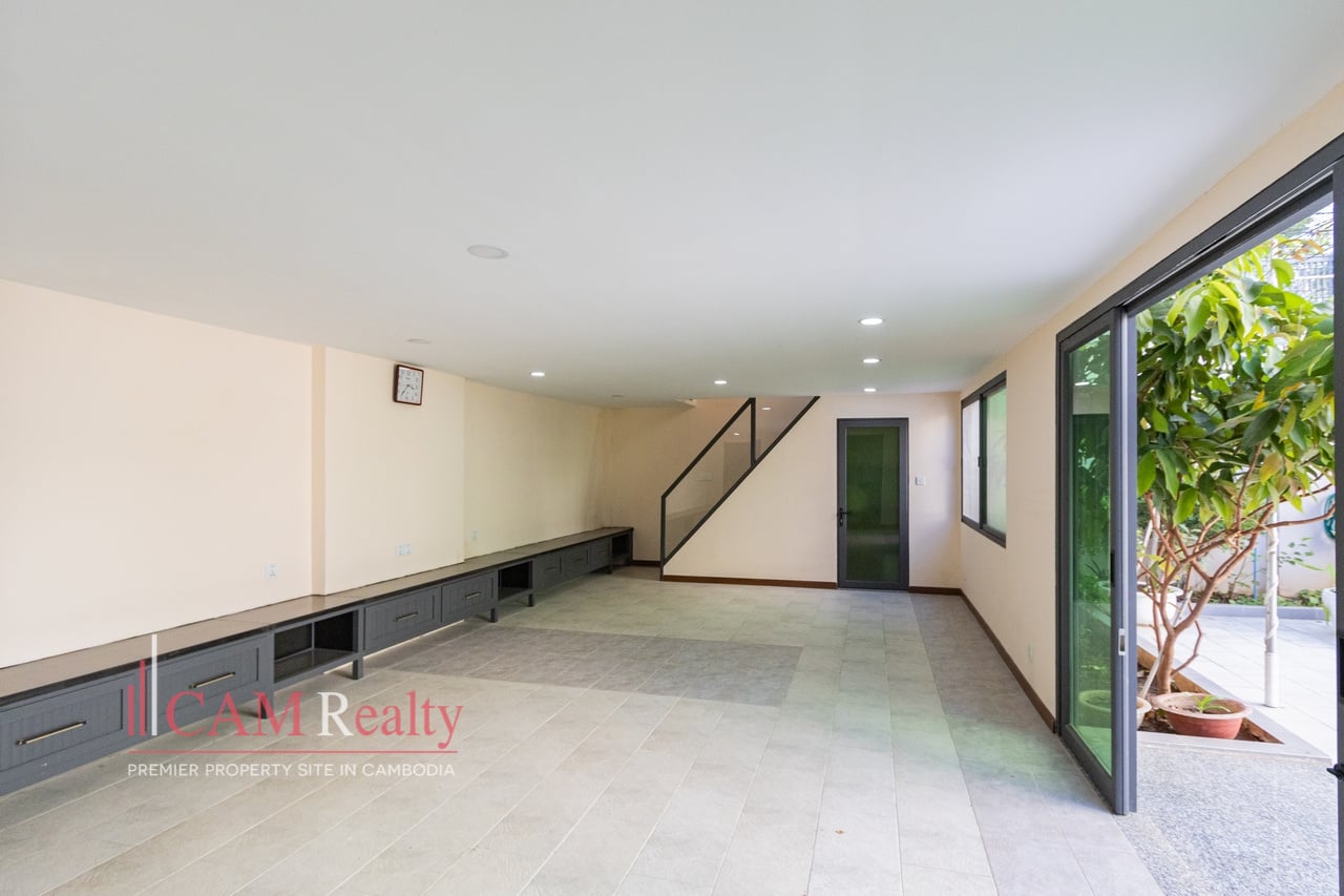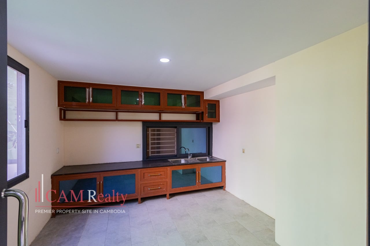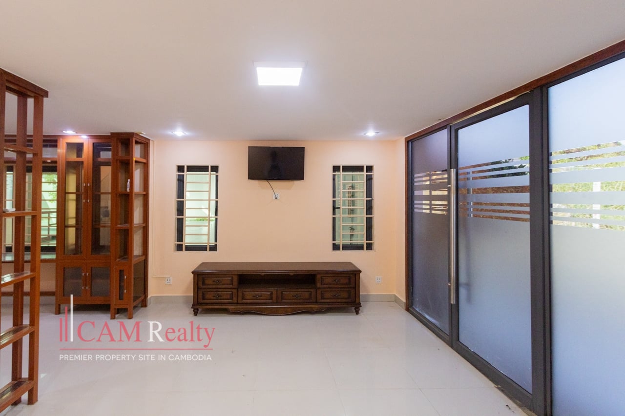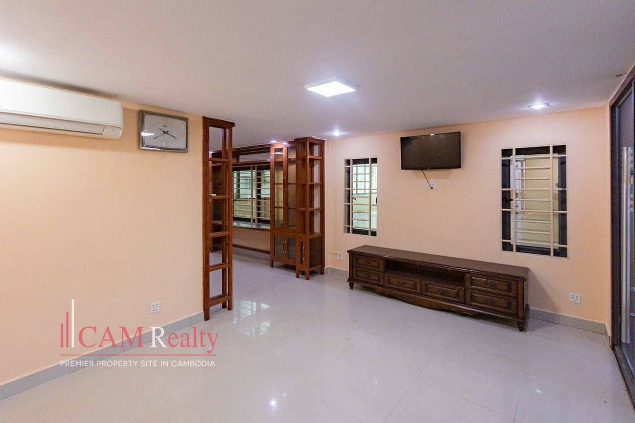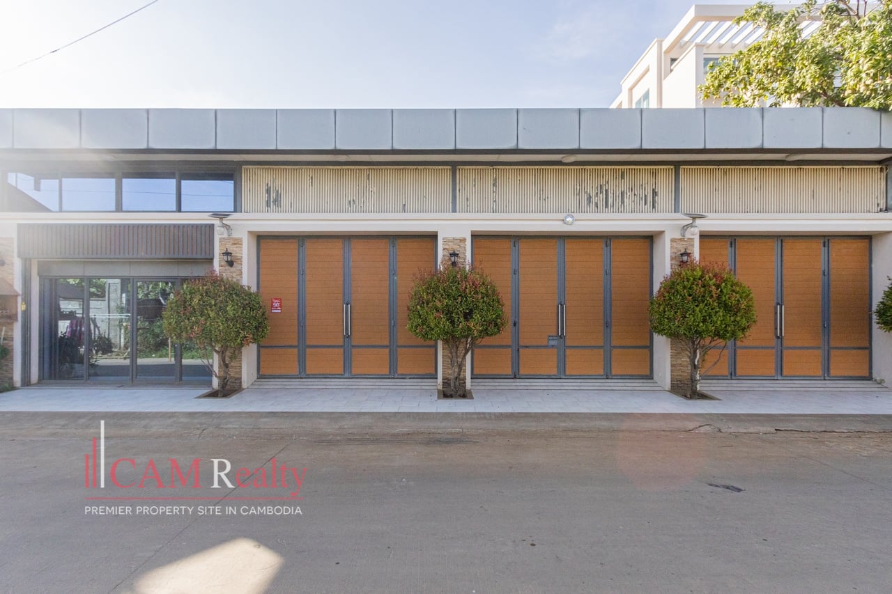 This villa is located in Sangkat Veal Sbov, Khan Chbar Ampov. The property is designed for residential or office use. It features a modern two-storey structure. The house offers five spacious bedrooms. There are two bathrooms with practical layouts. Two living rooms provide flexible living and working space.