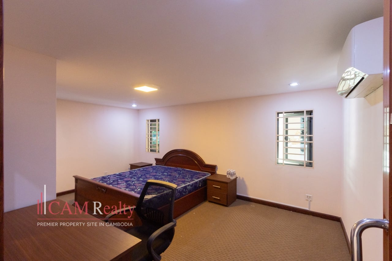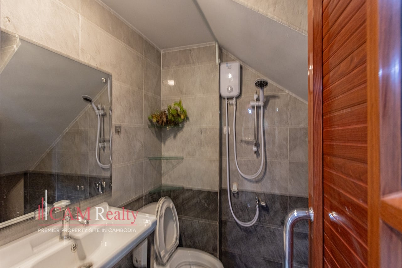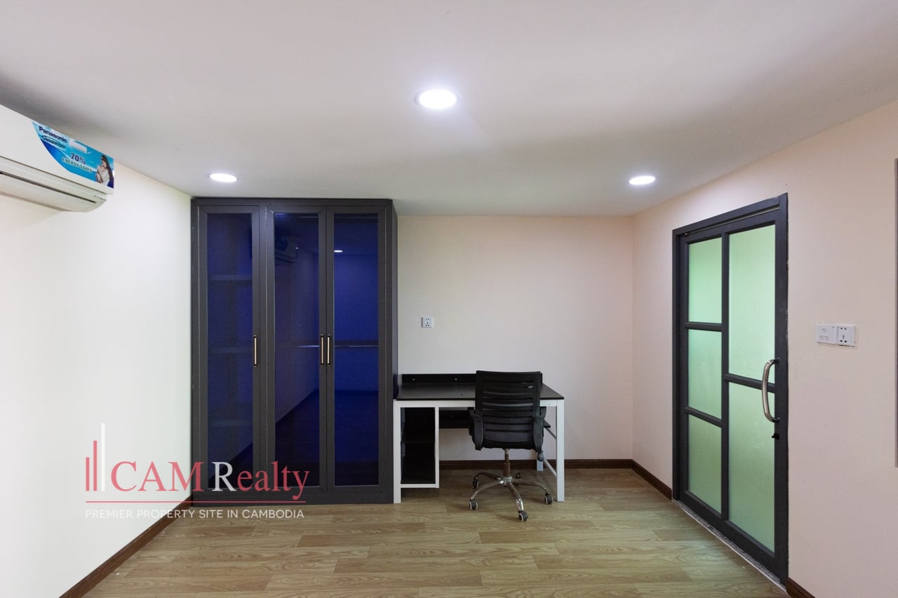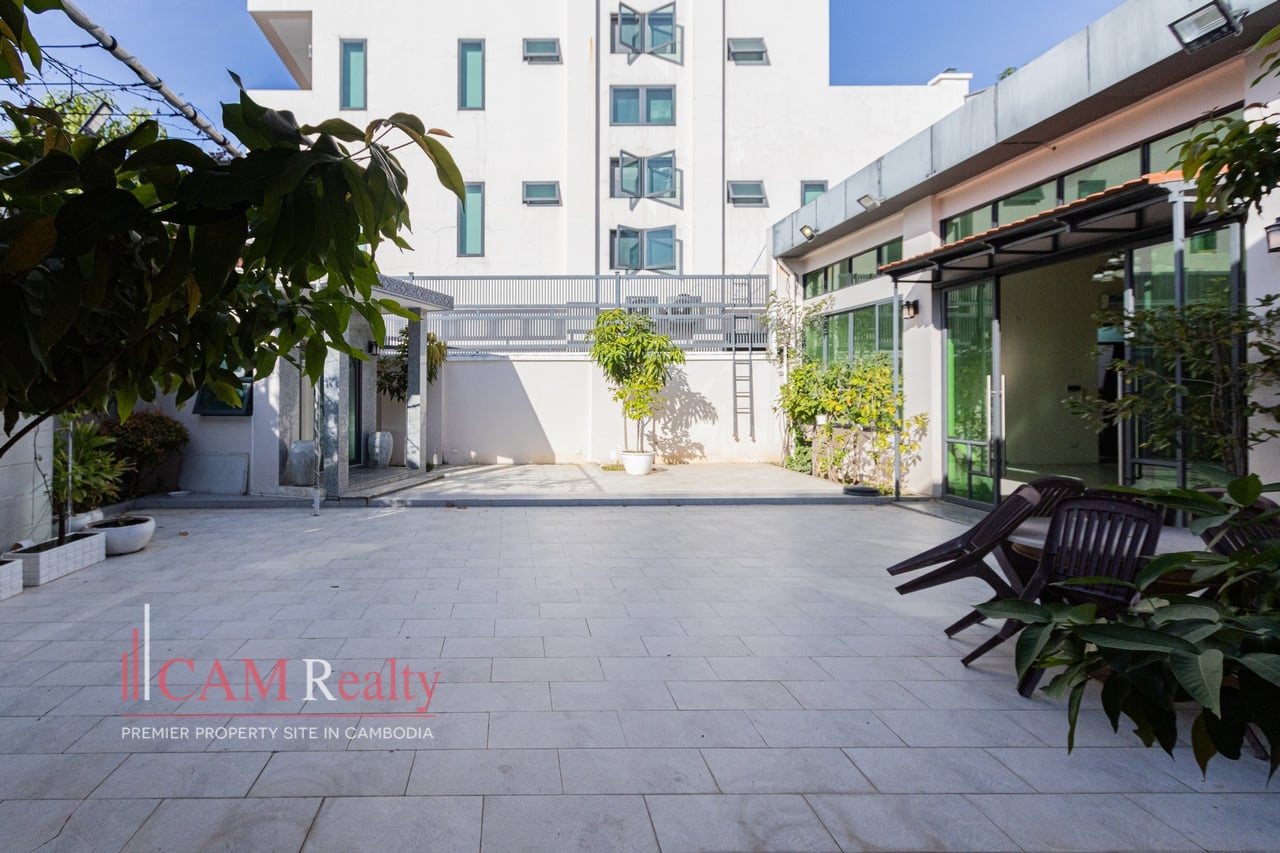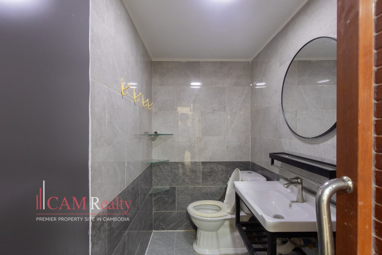 This villa is located in Sangkat Veal Sbov, Khan Chbar Ampov. The property is designed for residential or office use. It features a modern two-storey structure. The house offers five spacious bedrooms. There are two bathrooms with practical layouts. Two living rooms provide flexible living and working space.