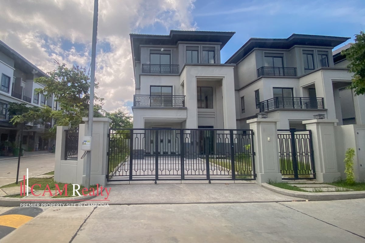 5 Bedrooms Queen B II Villa for sale in gated community for sale in Prek Leap area (Chip Mong Park 6A) – Phnom Penh. Location: 3.2km from Makro Chroy Changvar, 5.9km from 7-Eleven Chroy Changvar, and 9km from Morodok Techo National Stadium.