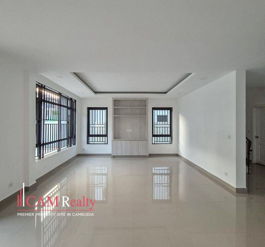 In gated community for rent in Prek Leap area (Chip Mong Park 6A) – Phnom Penh. Location: 3.2km from Makro Chroy Changvar, 5.9km from 7-Eleven Chroy Changvar, and 9km from Morodok Techo National Stadium.