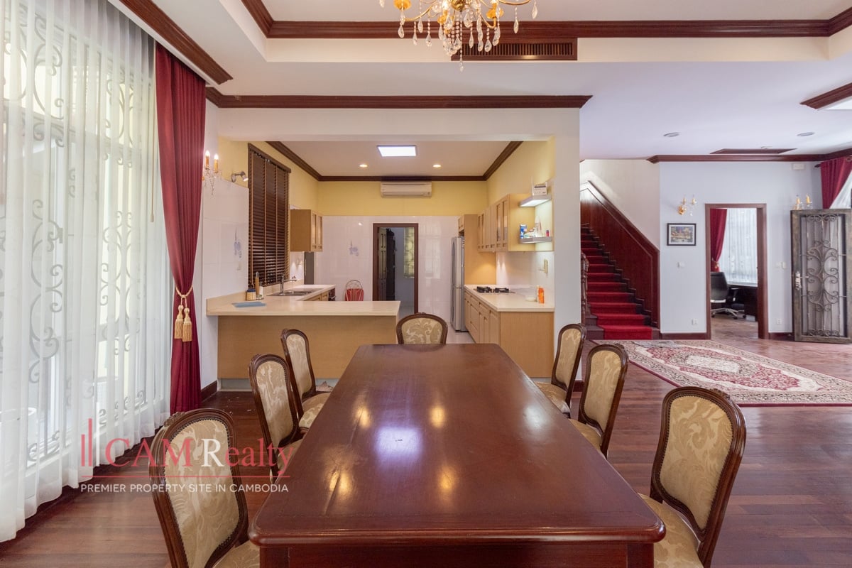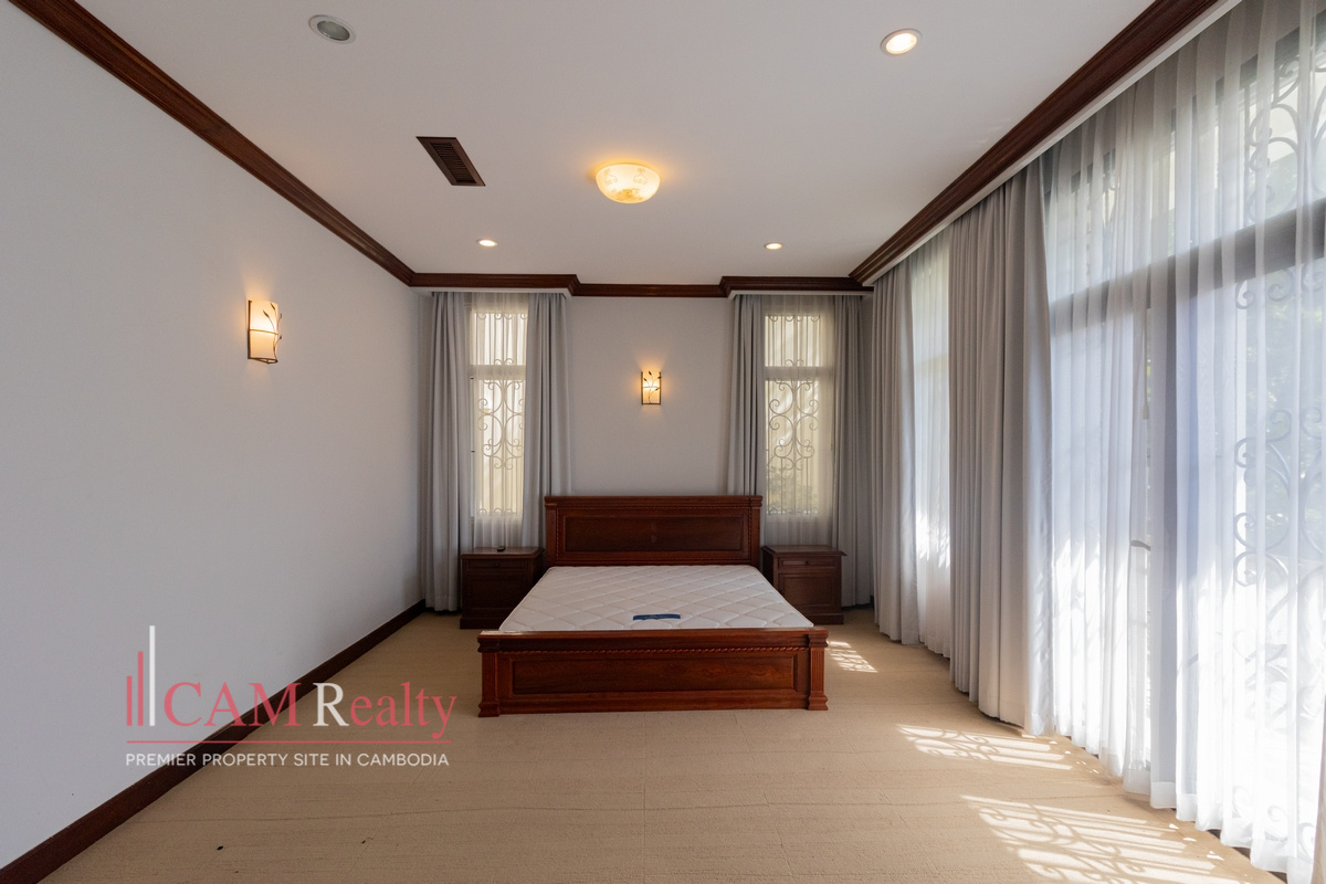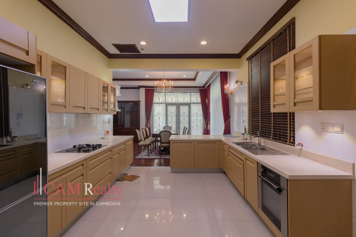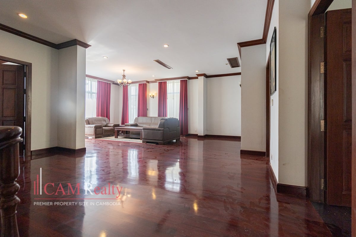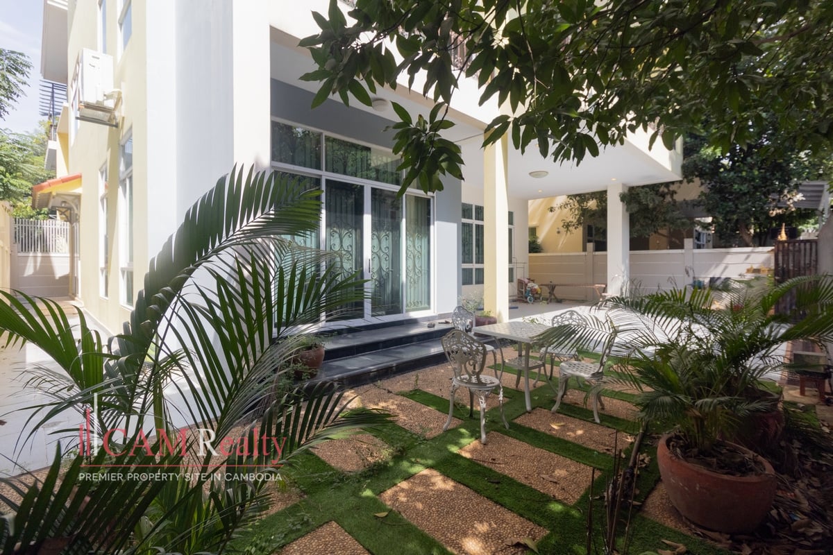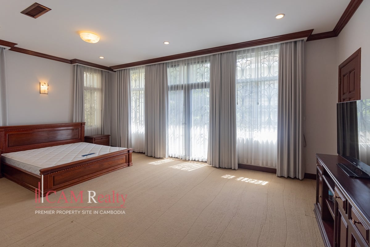 6 Bedroom Villa For Rent in Elite Town (Diamond Island). This spacious villa offers a modern lifestyle in Phnom Penh’s prestigious Diamond Island. It features six bedrooms, eight bathrooms, and three living rooms. The property is partly furnished and designed for comfort and functionality (Some Furniture will Be Remove). A rooftop terrace provides extra space for relaxation or gatherings.