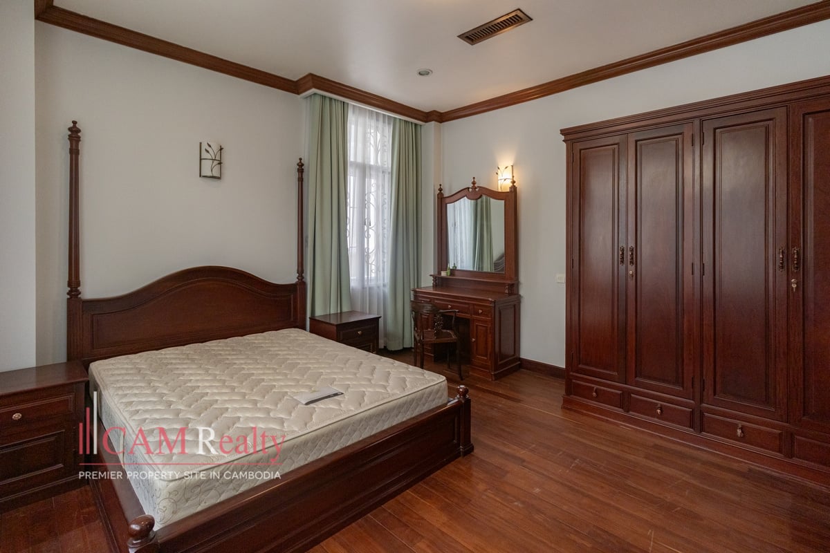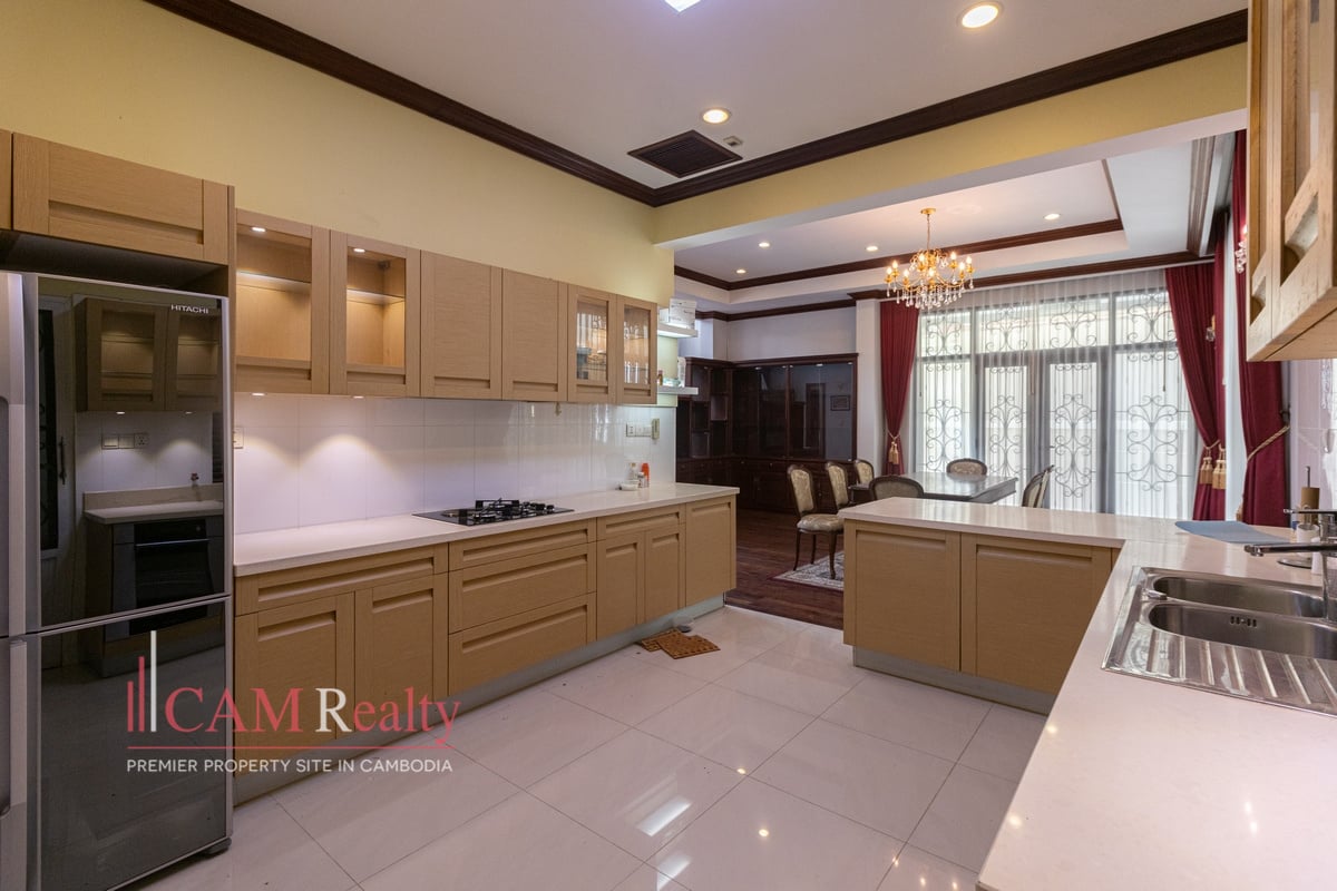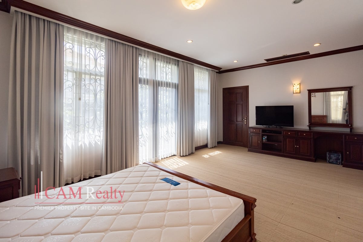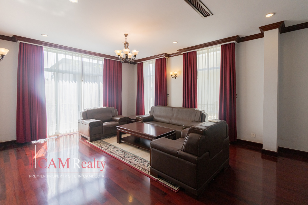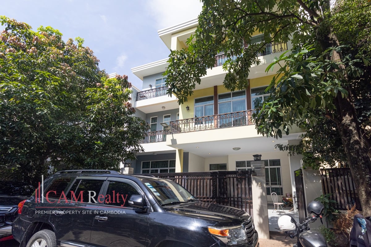 6 Bedroom Villa For Rent in Elite Town (Diamond Island). This spacious villa offers a modern lifestyle in Phnom Penh’s prestigious Diamond Island. It features six bedrooms, eight bathrooms, and three living rooms. The property is partly furnished and designed for comfort and functionality (Some Furniture will Be Remove). A rooftop terrace provides extra space for relaxation or gatherings.