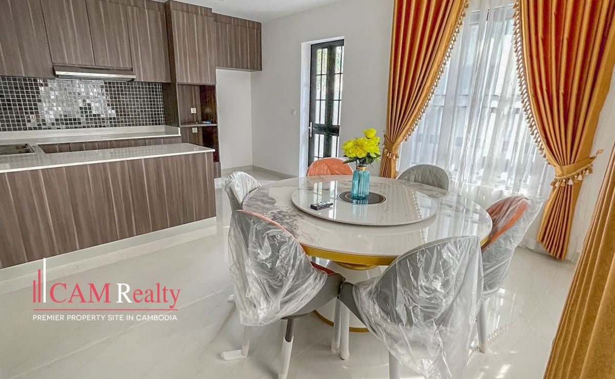 5 Bedrooms Queen B II Villa for sale in gated community for rent in Prek Leap area (Chip Mong Park 6A) – Phnom Penh. Location: 3.2km from Makro Chroy Changvar, 5.9km from 7-Eleven Chroy Changvar, and 9km from Morodok Techo National Stadium.
