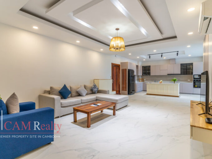 This elegant 3-bedroom serviced apartment in Tonle Basak offers an…