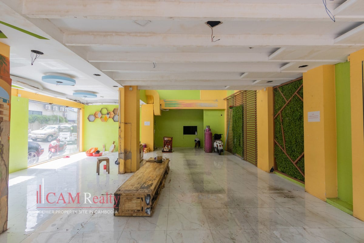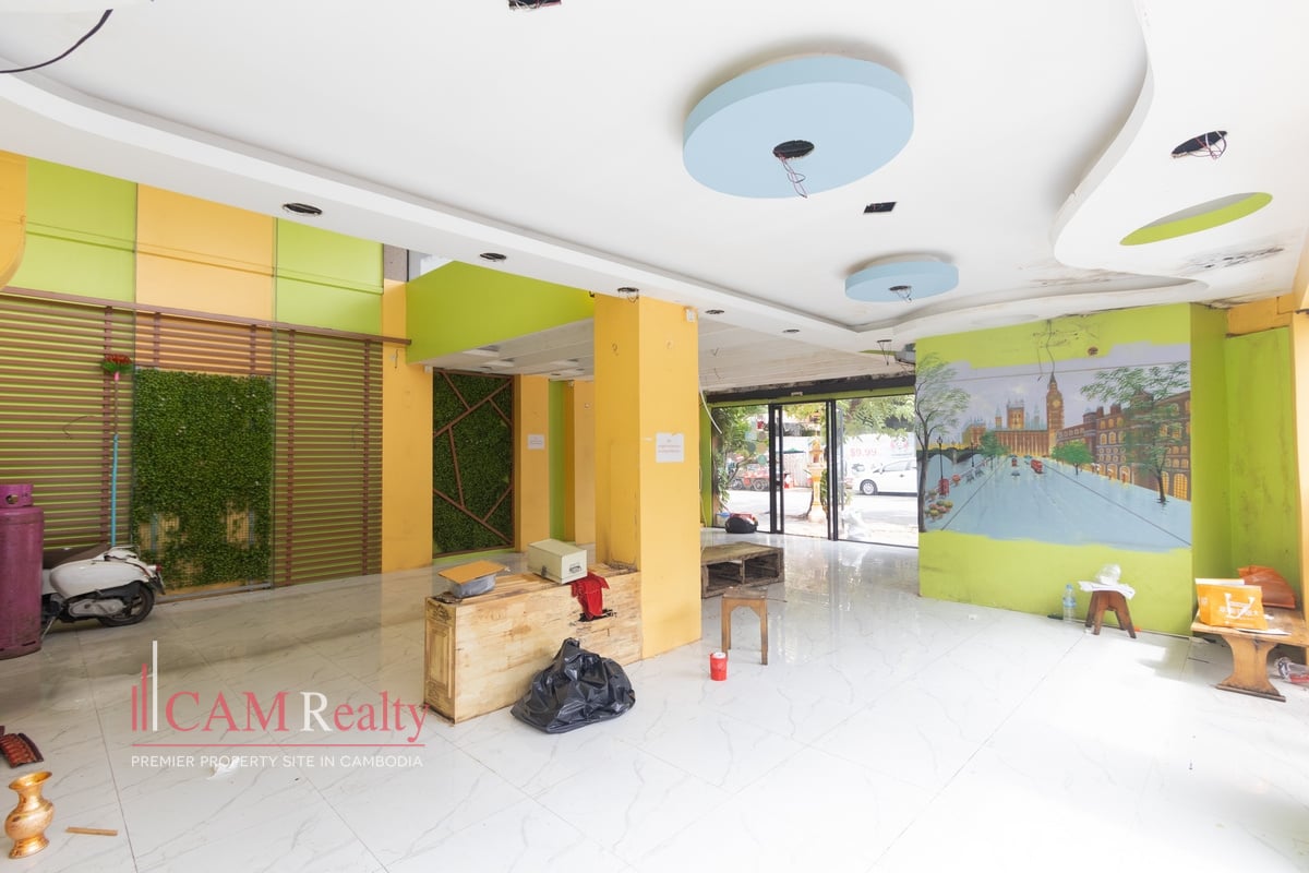 Corner retail space for rent in BKK1 area – Phnom Penh. This 131 square meters commercial/ office space is located in the busiest commercial district in the capital where most top professionals live. You can find top-grade serviced apartments, condominiums, office towers, international schools, restaurants, embassies, and brand coffee shops around this space. The space is at the corner of the street, facing East and South. The location is eyes catching and drives/walks across back and forth by a great number of pedestrians.