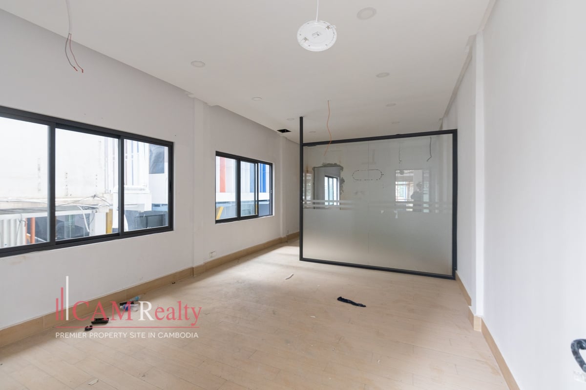 Commercial Property For Rent in BKK1. This commercial property is in the heart of BKK1. It offers three floors, suitable for a shop or business. The building includes six rooms and three bathrooms. West-facing property with good visibility. Ideal for branding and customer access.