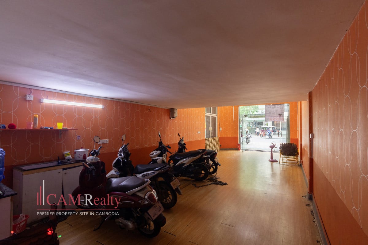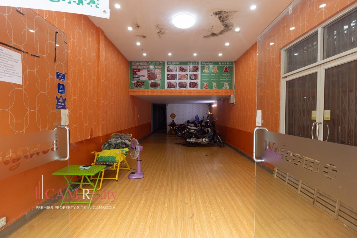 The space is strategically located right next to BKK3. This area borders the popular BKK district. It is situated in a busy part of Phnom Penh. The neighborhood is vibrant and offers great visibility. This location ensures strong potential customer traffic. It is conveniently close to central city amenities. This is a fantastic place to start or expand your business.