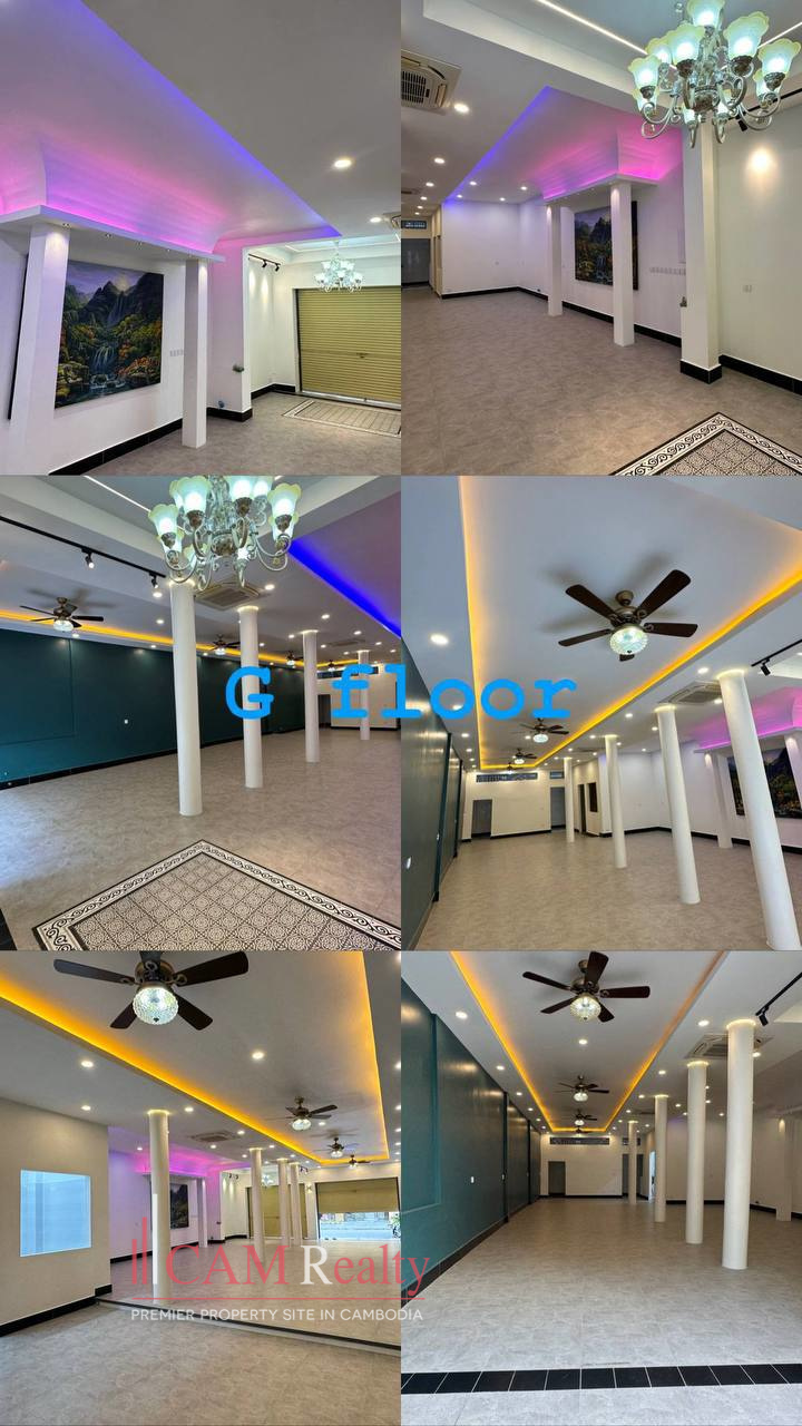 This commercial space is located in the heart of BKK1, Phnom Penh. Perfectly suited for a restaurant or café business. The building offers four floors and a north-facing frontage. It includes four bedrooms and five bathrooms. Unfurnished, allowing full customization to your style. The construction timeline and lease terms are negotiable.
